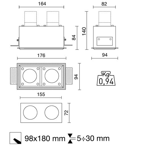 Adatto per montaggio a incasso - no
