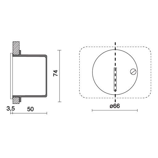 installazione: Incasso a Parete. foro incasso: Cassaforma per incasso tipo 503. fissaggio: Fissaggio a pressione. corpo / struttura: Corpo in pressofusione di alluminio. verniciatura: Verniciatura in polveri di poliestere con trattamento speciale per esterni (sabbiatura, decappaggio, n.3 lavaggi, fluorzirconatura, fondo in polveri epossidiche e finitura di superficie in polvere di poliestere). colore: Grigio. riflettore ottica: Lente LED in metacrilato. equipaggiamento: Guarnizioni in gomma siliconica. alimentatore: Non incluso; da ordinare separatamente. corrente: 350mA - 550mA dc. fascio luminoso: Asimmetrico. classe isolamento: Classe 3. peso: 0,200 kg. grado IP: 67. filo incandescente: 850 °C. lampada inclusa: si. tipo LED: Power LED. potenza lampada: 2 W. flusso lampada: 80 lm. temperatura di colore: 3000K. indice resa cromatica: 80