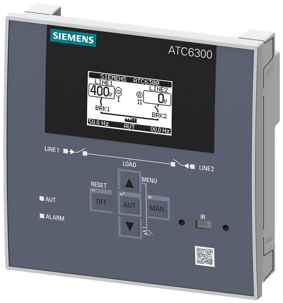 SENTRON 3KC ATC6300; LCD; 144x144 mm; commutatore automatico di rete per comando di MCCB, ACB, LBS; per trasferimento del carico tra rete principale e rete di riserva; apparecchio da incasso nel pannello di comando; Un AC 100 ... 240 V 50/60 Hz, DC 110 ... 250 V; Un DC 12 ... 24 V tensione nominale Ue: AC 100 ... 480 V 50/60 Hz; connessione a morsetto ampliabilità con max. 2 moduli aggiuntivi accessori per commutatore di rete SENTRON 3KC9 per unelevata flessibilità. Grazie a unampia gamma di accessori, icommutatori di rete possono essere utilizzati per diverse esigenze ed essere installati successivamente in qualsiasi momento. Sicurezza integrale per utenti e sistemi.