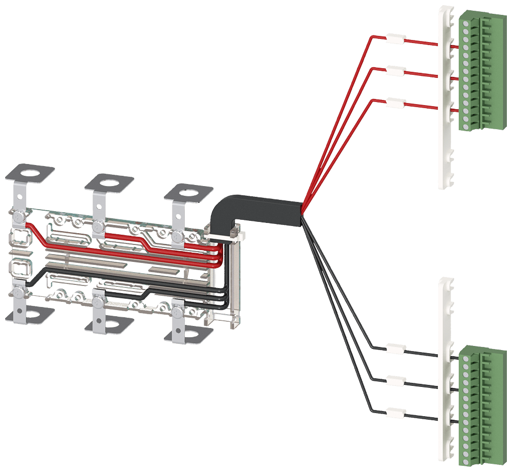 accessori per 3KC8 morsetti di collegamento dei conduttori ausiliario, kit di montaggio per attacchi inferiori a 3 poli per 400 A contiene 1 pezzo Accessori per commutatore di rete SENTRON 3KC9 per unelevata flessibilità. Grazie a unampia gamma di accessori, i commutatori di rete possono essere utilizzati per diverse esigenze ed essere installati successivamente in qualsiasi momento. Sicurezza integrale per utenti e sistemi.