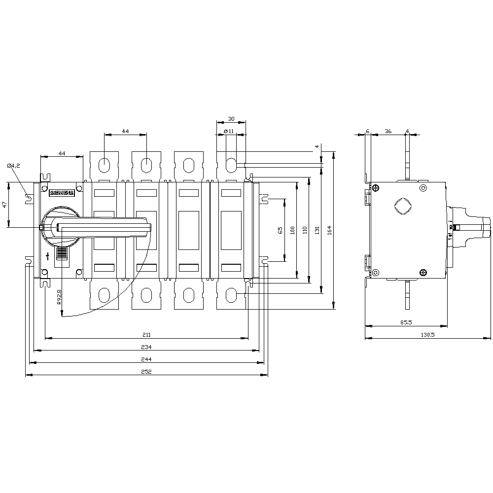 SIEMENS - SIE3KD36420PE100 SEZ. 200A 4P MAN.DIR.
