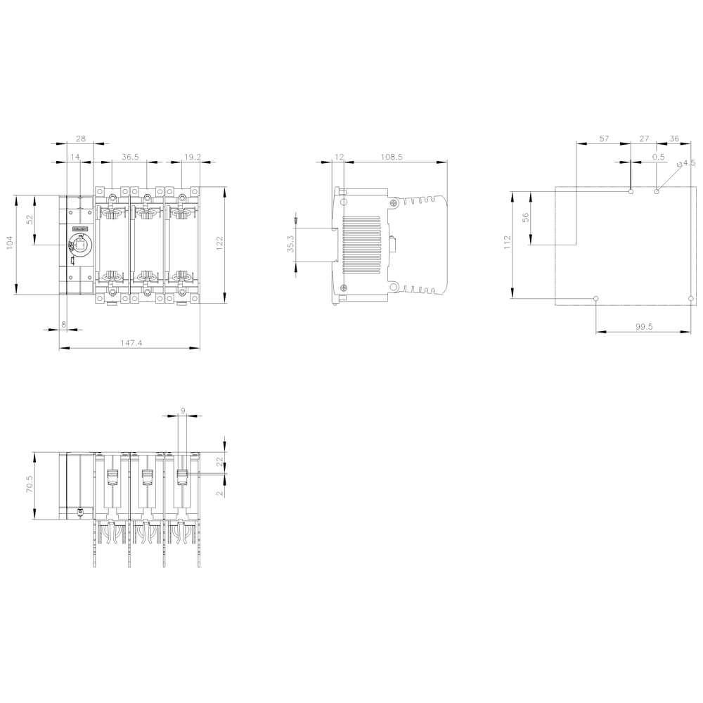 SIEMENS - SIE3KF13030LB51 SEZ FUS SITOR 3X32A NH000 C.FRONT SX MOR