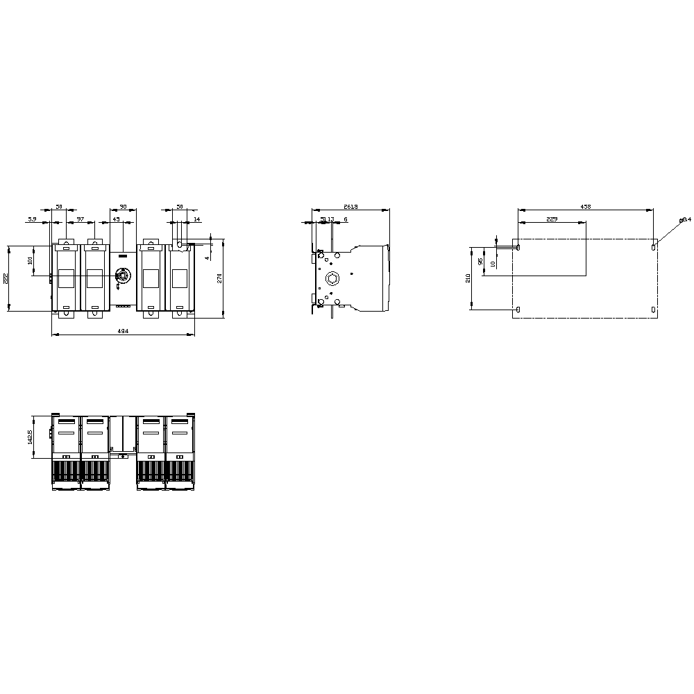 SIEMENS - SIE3KF54630MF11 SEZ FUS 4P 630A NH3 COM CENT W/O MANIGL