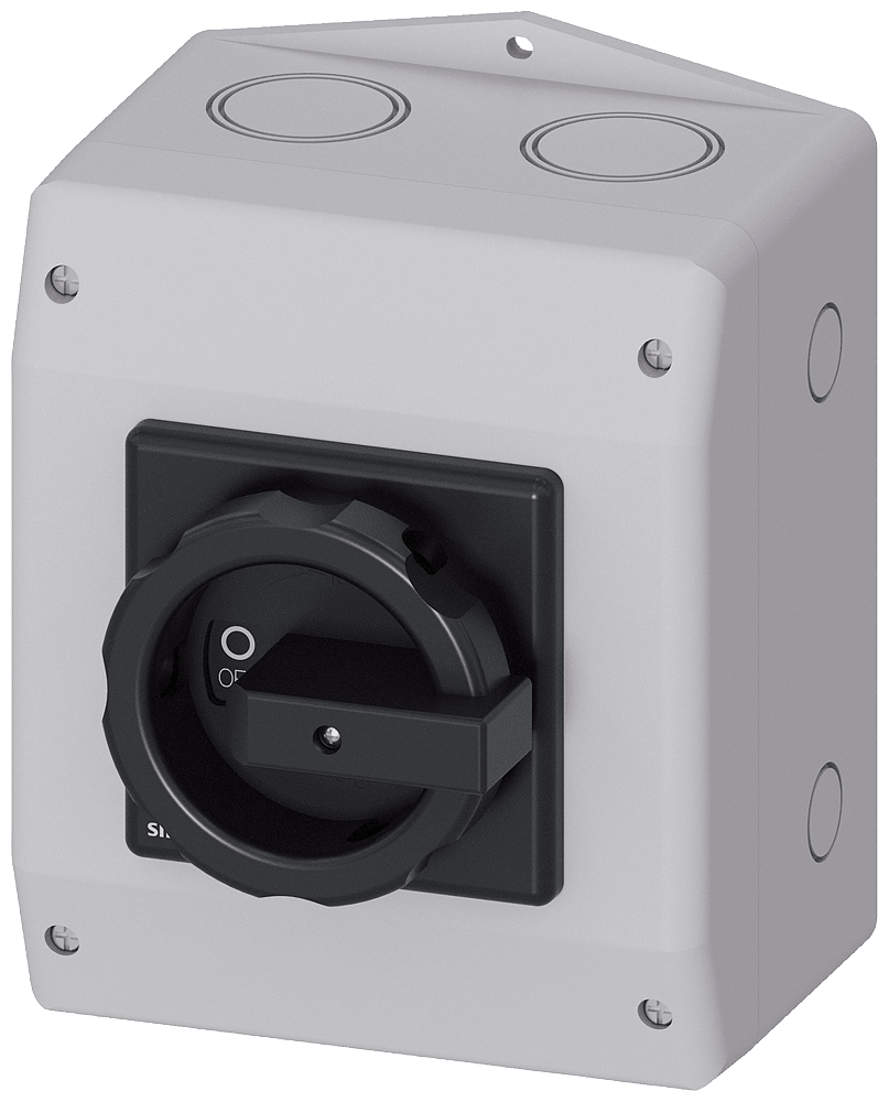 SENTRON, sezionatore sottocarico 3LD, interruttore principale, a 6 poli, Iu: 25 A, potenza in esercizio / per AC-23 A / con 400 V: 9,5 kW, custodia in materiale isolante per raccordo a vite metrico, 1 NC, 1 NO, comando rotativo, nero Sezionatori sottocarico SENTRON 3LD2 per la disinserzione sicura dei carichi in numerosi settori, ad es. per motori trifase, impianti di climatizzazione e ventilazione, costruzione di macchine di lavorazione e di impianti di trasporto industriale, nellindustria chimica o nellindustria dei generi alimentari e delle bevande. Struttura modulare, montaggio semplice e rapido di blocchetti di contatti ausiliari, morsetto PE/N o 4º polo. Ottimale sezionamento dalla rete da 16 A a 250 A grazie alla lucchettabilità del comando rotativo. Grado di protezione fino a IP65 con involucro incapsulato adatto per applicazioni allaperto. Impiego versatile e universale grazie ad approvazioni internazionali IEC, UL, CCC e per la costruzione navale. Gli interruttori principali e gli interruttori di OFF di emergenza 3LD sono disponibili in molteplici varianti per il fissaggio frontale, su piastra di montaggio, su guida DIN o montaggio in quadro di distribuzione, a scelta con comando rotativo bloccoporta diretto o rinviato. I 3LD2 sono disponibili anche con varianti per applicazioni in corrente continua. Interruttori principali e di OFF di emergenza 3LD - Sicurezza integrale per utenti e sistemi.