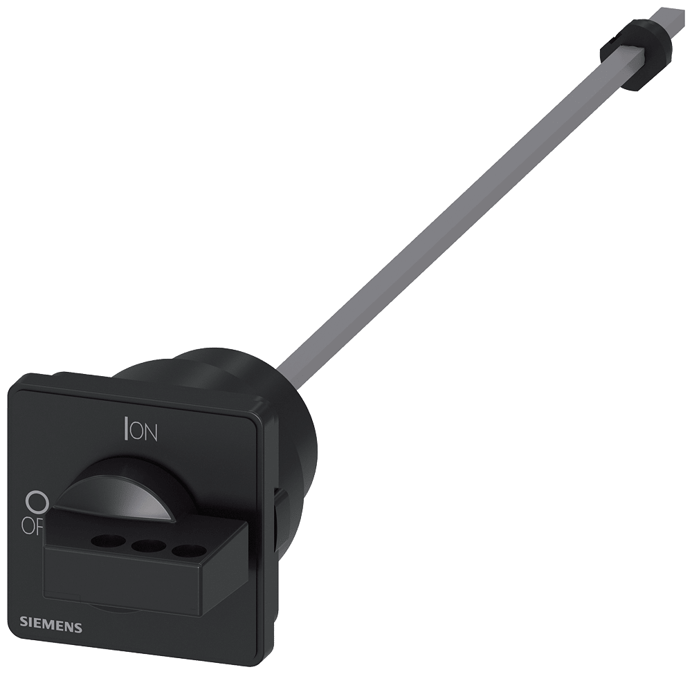 comando rinviato rotativo bloccoporta, leva di azionamento nera, aggirabile, 66x66 mm, bloccabile in posizione 0, per fissaggio frontale su quattro fori, con parte di accoppiamento di sbarre, con albero lungo 300 mm, 6x6 mm. accessori per sezionatori sottocarico 3LD3 Interruttori principali e di OFF di emergenza 3LD - Sicurezza integrale per utenti e sistemi.