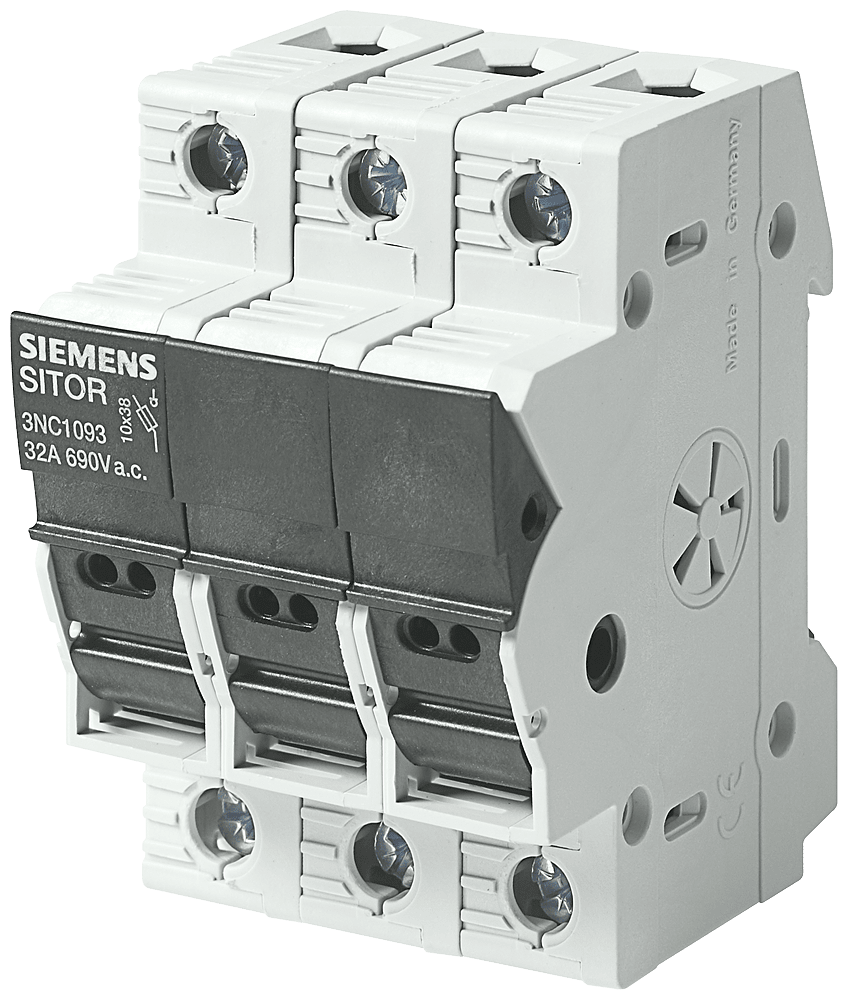 Interruttore di manovra-fusibile SITOR interruttore 10x 38, fino a 32A, 690V AC, a 3 poli Sezionatore sottocarico a fusibili SITOR SENTRON 3NC1 per fusibili per semiconduttori SITOR. Quale parte integrante importante dei componenti di protezione SENTRON per linstallazione elettrica, il sistema di fusibili SITOR offre una protezione efficace per le persone, gli apparecchi e gli impianti grazie alla disinserzione sicura in caso di sovraccarico e cortocircuito. Grazie alle loro caratteristiche di disinserzione extrarapida, rispetto ai fusibili NH convenzionali, e alla loro corrispondenza ottimalealla curva caratteristica, anche i semiconduttori di potenza sono protetti in modo affidabile. Dispositivi di protezione SENTRON - Una scelta sicura.