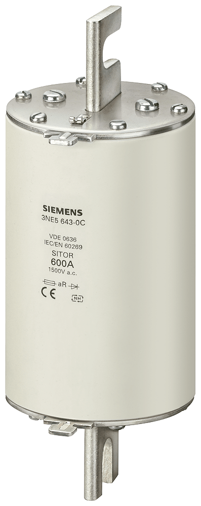 Cartuccia fusibile SITOR, con contatti a coltello intagliati, NH3, In: 600 A, aR, Un AC: 1500 V, Un DC: 900 V, segnalatore di intervento frontale I fusibili di protezione per semiconduttori SITOR 3NE, 3NC proteggono i semiconduttori dagli effetti di un cortocircuito. Il sistema di fusibili SITOR di Siemens, quale parte integrante importante dei componenti di protezione SENTRON per linstallazione elettrica, offre una protezione efficace per le persone, gli apparecchi e gli impianti grazie alla disinserzione sicura in caso di sovraccarico e cortocircuito. Il campo dimpiego comprende inoltre convertitori di frequenza con fusibili nel circuito dingresso e nel circuito intermedio DC nonché impianti di alimentazione di continuità UPS e softstarter per motori. I fusibili SITOR di Siemens si contraddistinguono soprattutto per le seguenti caratteristiche: 1. Caratteristica di disinserzione extrarapida rispetto ai comuni fusibili NH. 2. Protezione sicura anche dei semiconduttori di potenza in caso di cortocircuito. 3. Lo standard di qualità Siemens assicura una corrispondenza ottimale alla curva caratteristica. 4. I fusibili cilindrici SITOR sono omologati secondo IEC e UL nonché in gran parte anche secondo CCC e possono pertanto essere impiegati in tutto il mondo. 5. Adatti in parte per il montaggio su basi portafusibili NH, in sezionatori sottocarico a fusibili NH e sezionatori sottocarico con fusibili.