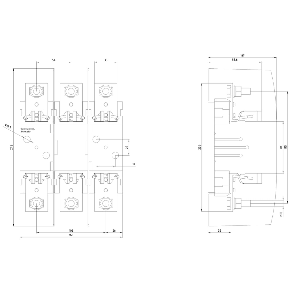 SIEMENS - SIE3NH8230 BASE 3P NH1 250A/690V (1000V) CERAM.VITE