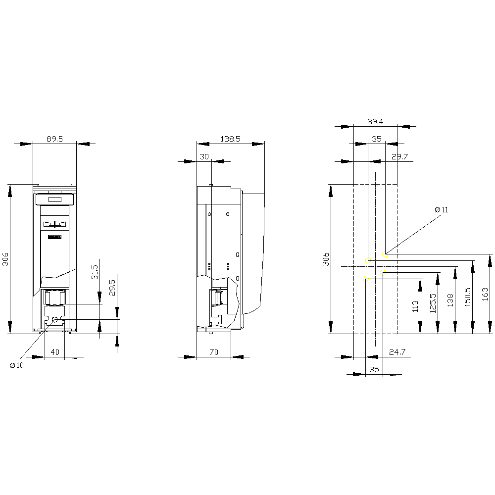 SIEMENS - SIE3NP11611DA10 SEZ.FUS.NH3 1P 630A FIX PIAST.70MM SBAR