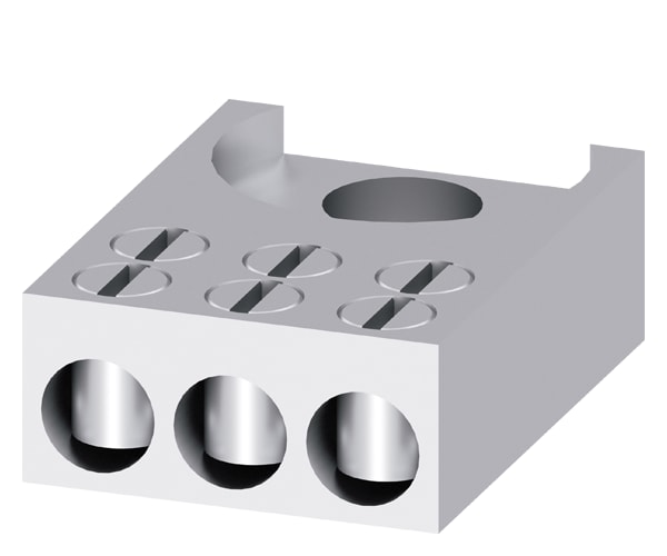 Morsetto triplo 3x 2,5 - 16 mm2, per grandezza costruttiva NH00 con morsetto a vite, accessori per sezionatori sottocarico a fusibili 3NP1 contiene 3 morsetti Morsetto triplo 3 x 2,5 ... 16 mm² SENTRON 3NP19 come accessori per sezionatori sottocarico a fusibili 3NP1. Queste parti accessorie sono facili e comode da montare e collegare. Grazie alla protezione contro i contatti accidentali di serie, la sicurezza è garantita in modo affidabile durante linstallazione. Tecnica ottimale per la vostra sicurezza - solo da Siemens.