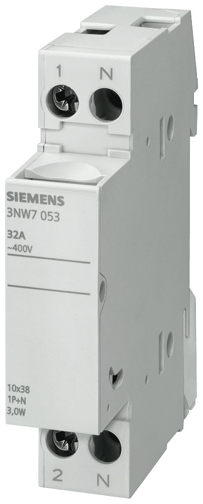 SENTRON, portafusibili per cartucce cilindriche, 10x38 mm, 1P+N, In: 32 A, Un AC: 690 V Portafusibili per cartucce cilindriche 3NW7 per il sistema di fusibili cilindrici SENTRON per la protezione impianto selettiva. I portafusibili e le cartucce fusibilicilindriche 3NW sono stati sviluppati per proteggere i componenti a semiconduttore. Soddisfano gli standard internazionali come IEC 60269, che li rende utilizzabili in tutto il mondo. Sono testati e approvati in Europa come sezionatori-fusibili, ma non sono previsti per la commutazione sotto carico. Dispositivi di protezione SENTRON - Una scelta sicura.
