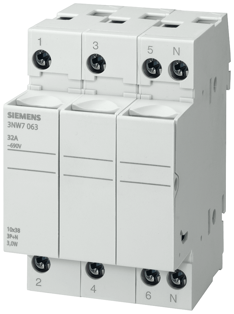 SIEMENS - SIE3NW7063 BASE SEZ.X FUS. CIL.10X38 3P+N 32A 3UM
