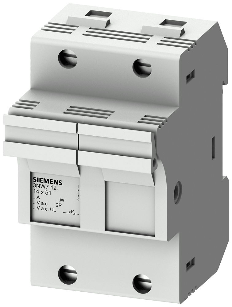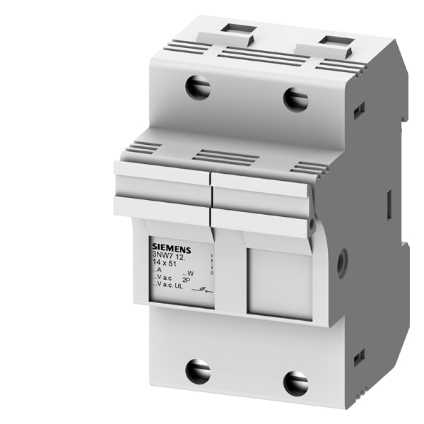 SENTRON, portafusibili per cartucce cilindriche, 14x51 mm, a 2 poli, In: 50 A, Un AC: 690 V Portafusibili per cartucce cilindriche 3NW7 per il sistema di fusibili cilindrici SENTRON per la protezione impianto selettiva. I portafusibili e le cartucce fusibili cilindriche 3NW sono stati sviluppati per proteggere i componenti a semiconduttore. Soddisfano gli standard internazionali come IEC 60269, che li rende utilizzabili in tutto il mondo. Sono testati e approvati in Europa come sezionatori-fusibili, ma non sono previsti per la commutazione sotto carico. Dispositivi di protezione SENTRON - Una scelta sicura.