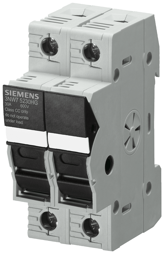 SENTRON, portafusibile, classe CC, a 2 poli, In: 30 A, Un AC: 600 V, rispettare le norme di installazione nazionali! Esecuzione standard, struttura modulare Portafusibili 3NW7 per sistemi di fusibili SENTRON UL per la protezione impianto selettiva. I sistemi di sicurezza UL hanno lomologazione UL e CSA per limpiego nel mercato nordamericano. I fusibili Class CC vengono impiegati per applicazioni di Branch Circuit Protection. Le cartucce fusibili Class J vengono impiegate per applicazioni di Branch Circuit Protection e nel Feeder Circuit. Dispositivi di protezione SENTRON - Una scelta sicura.