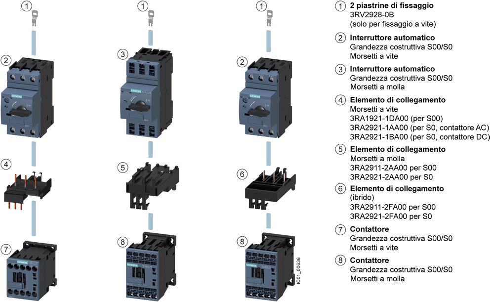 Esecuzione collegamento elettrico per circuito corrente ausiliaria e di comando: