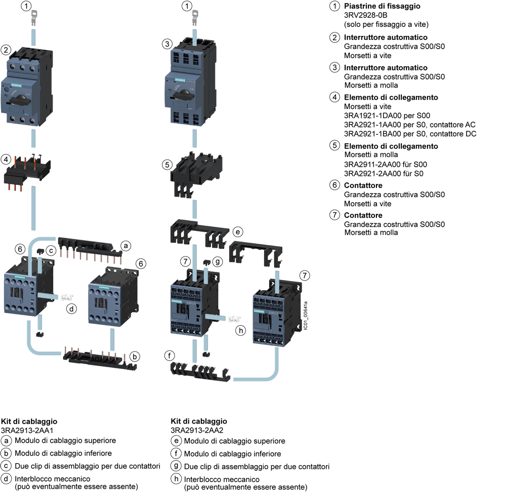 Esecuzione collegamento elettrico per circuito corrente ausiliaria e di comando: