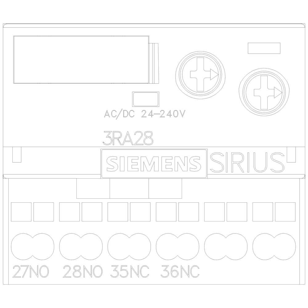 blocchetto di contatti ausiliari ritardato elettronicamente blocchetto di contatti ausiliari, ritardato alleccitazione, relè 1 NC + 1 NO, intervallo di tempo 0,05...100 s, AC/DC 24...240 V, 50/60 Hz, varistore per lo smorzamento delle bobine del contattore integrato, morsetti a molla, innestabile a scatto sul lato frontale per contattori 3RT20 e contattori ausiliari 3RH2 Blocchetto di contatti ausiliari ritardato elettronicamente SIRIUS 3RA28 per la commutazione ritardata di circuiti a valle per il montaggio su contattori 3RT2 e contattori ausiliari 3RH2. I blocchetti di contatti ausiliari ritardati elettronicamente offrono unelevata precisione di regolazione con campi dei tempi commutabili e dispongono di un interblocco elettrico integrato e di un varistore integrato lato fabbrica (circuitazione di protezione). Linserimento semplice e senza attrezzi consente la realizzazione di funzioni di temporizzazione indipendenti dallapparecchiatura di comando senza cablaggio addizionale. Si escludono così gli errori di cablaggio e si riducono i costi di collaudo. Grazie al montaggio frontale agli apparecchi si risparmia posto sulla guida DIN. Gli apparecchi sono impiegabili in tutto il mondo grazie ad approvazioni internazionali (ad es. IEC, CCC, UL/CSA). I blocchetti di contatti ausiliari ritardati elettronicamente sono fornibili per contattori 3RT2 e contattori ausiliari 3RH2 nelle grandezze costruttive da S00 a S3. Disponibili con un ampio campo di tensione AC/DC 24-240 V, uscite a scelta 1 NO + 1 NC o 1 CO e con morsetti a vite o a molla. Per i blocchetti di contatti ausiliari ritardati elettronicamente sono disponibili kit di cablaggio e una copertura piombabile. Relè SIRIUS - un programma per ogni evenienza.