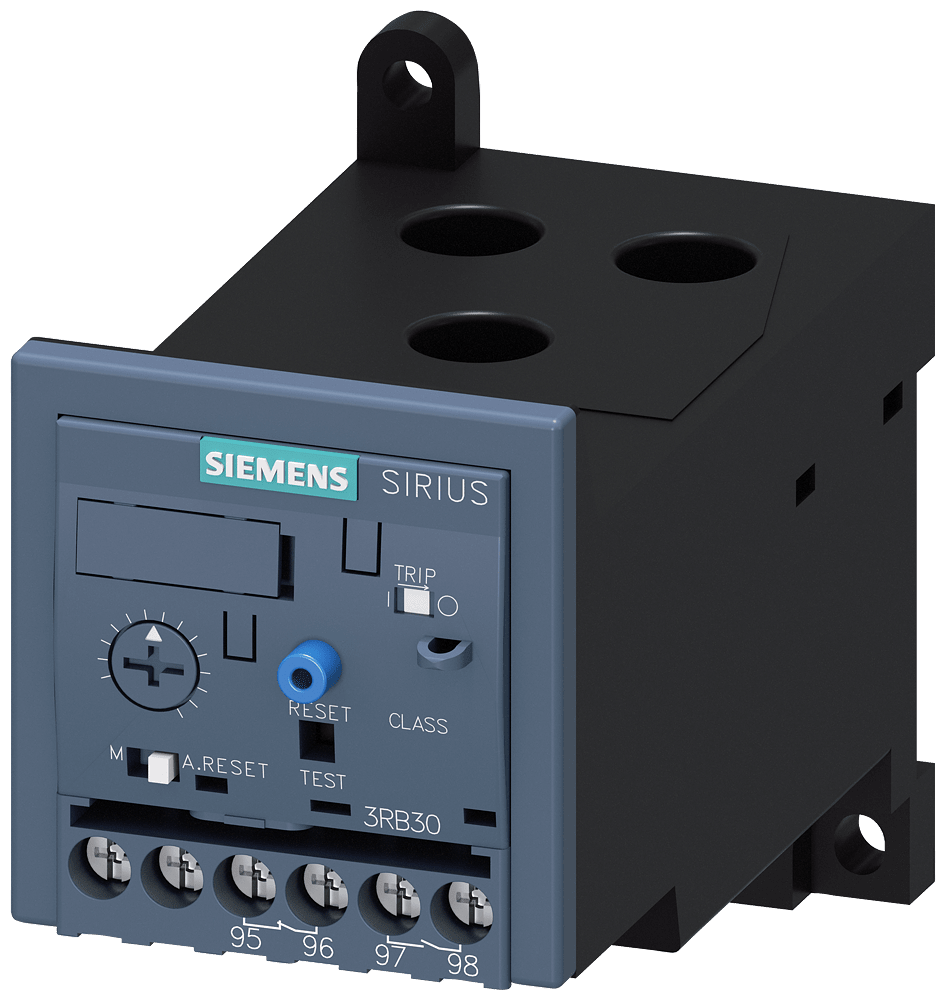 relè di sovraccarico 12,5...50 A elettronico per protezione motore grandezza costruttiva S2, CLASS 20E montaggio separato circuito principale: trasformatore a foro passante circuito ausiliario: a vite reset manuale-automatico relè di sovraccarico elettronico SIRIUS 3RB3 per la protezione in funzione della corrente di utilizzatori con avviamento normale e pesante contro un surriscaldamento eccessivo causato da sovraccarico, asimmetria delle fasi o mancanza di fase. Grazie agli ampi campi di regolazione della corrente e alle diverse caratteristiche di sgancio, già pochi tipi di apparecchi possono soddisfare le esigenze di intere serie costruttive di motori. La loro potenza dissipata ridotta comporta unalta efficienza energetica e un basso riscaldamento nelquadro elettrico. Sono ovviamente disponibili omologazioni internazionali (ad es. IEC e UL/CSA) ed esecuzioni per applicazioni in aree a rischio di esplosione (ATEX). Fornibili con diversi campi di regolazione dello sganciatore di sovraccarico e con diverse classi di sgancio. Essi sono disponibili con morsetti a vite o a molla per un collegamento rapido, esente da manutenzione e resistente alle vibrazioni nonché per montaggio separato. Gli accessori sono omogeneamente adatti pertutte le grandezze costruttive da S00 a S3. Semplice, efficiente, sempre attuale - il sistema modulare SIRIUS.