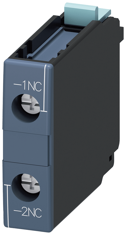 blocchetto di contatti ausiliari sul lato frontale, 1 NC, morsetti a vite, per contattori 3RT1 contatto ausiliario SIRIUS 3RH19 per lampliamento dei contatti ausiliari nel circuito di comando. Questo blocchetto di contatti ausiliari 3RH19 può essere montato senza attrezzi sui contattori 3RT1 e sui contattori ausiliari 3RH1 delle grandezze costruttive da S0 a S12. I blocchetti di contatti ausiliari 3RH19/3RH29 sono fornibili come varianti per il montaggio frontale o laterale, con fino a quattro contatti NO con commutazione istantanea o fino a due contatti NO e NC anticipati. I blocchetti di contattiausiliari possono essere in esecuzione con elementi di contatto a guida forzata in contattori ausiliari 3RH o anche come contatti speculari in contattori di potenza 3RT. Essi sono sempre fornibili con morsetti a vite e morsetti a molla. Semplice, efficiente, sempre attuale - il sistema modulare SIRIUS.