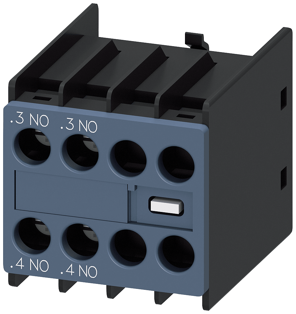 blocchetto di contatti ausiliari, sul lato frontale, 2 NO, .3/.4, .3/.4, --/--, --/--, via di corrente: 1 NO, 1 NO, --, --, morsetti a vite, per contattori 3RT2 e contattori ausiliari 3RH2 contatto ausiliario SIRIUS 3RH29 per lampliamento dei contatti ausiliari nel circuito di comando. I blocchetti di contatti ausiliari frontali 3RH29 possono essere montati senza attrezzi indipendentemente dalla grandezza costruttiva sui contattori 3RT2 e sui contattori ausiliari 3RH2. I blocchetti di contatti ausiliari 3RH19/3RH29 sono fornibili come varianti per il montaggio frontale o laterale, con fino a quattro contatti NO con commutazione istantanea o fino a due contatti NO e NC anticipati. I blocchetti di contatti ausiliari possono essere in esecuzione con elementi di contatto a guida forzata in contattori ausiliari 3RH o anche come contatti speculari in contattori di potenza 3RT. Essi sono sempre fornibili con morsetti a vite e morsetti a molla. Semplice, efficiente, sempre attuale - il sistema modulare SIRIUS.