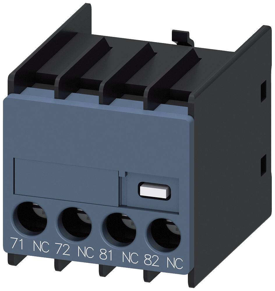 blocchetto di contatti ausiliari, sul lato frontale, 2 NC, 71/72, 81/82, via di corrente: 1 NC, 1 NC, ingresso cavi dal basso, morsetti a vite, per contattori 3RT2 e contattori ausiliari 3RH2 contatto ausiliario SIRIUS 3RH29 per lampliamento dei contattiausiliari nel circuito di comando. I blocchetti di contatti ausiliari frontali 3RH29 possono essere montati senza attrezzi indipendentemente dalla grandezza costruttiva sui contattori 3RT2 e sui contattori ausiliari 3RH2. I blocchetti di contatti ausiliari 3RH19/3RH29 sono fornibili come varianti per il montaggio frontale o laterale, con fino a quattro contatti NO con commutazione istantanea o fino a due contatti NO e NC anticipati. I blocchetti di contatti ausiliari possono essere in esecuzione con elementi di contatto a guida forzata in contattori ausiliari 3RH o anche come contatti speculari in contattori di potenza 3RT. Essi sono sempre fornibili con morsetti a vite e morsetti a molla. Semplice, efficiente, sempre attuale - il sistema modulare SIRIUS.