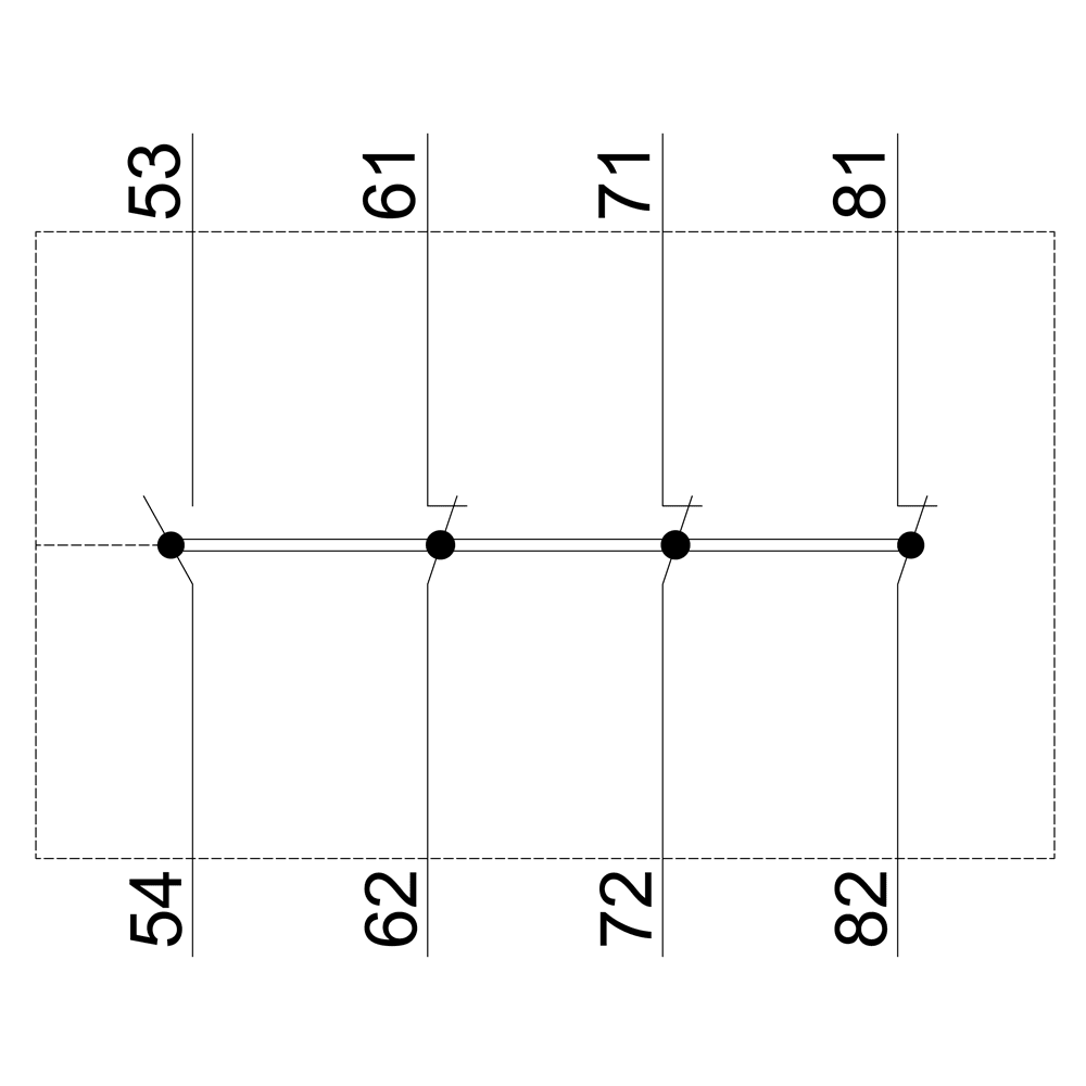 blocchetto di contatti ausiliari, sul lato frontale, 1 NO + 3 NC, 53/54, 61/62, 71/72, 81/82, via di corrente: 1 NO, 1 NC, 1 NC, 1 NC, morsetti a molla, con codifica fisica, solo con contattori ausiliari 3RH2140 e 3RH2440 combinabili (secondo EN 50011) contatto ausiliario SIRIUS 3RH29 per lampliamento dei contatti ausiliari nel circuito di comando. I blocchetti di contatti ausiliari frontali 3RH29 possono essere montati senza attrezzi indipendentemente dalla grandezza costruttiva sui contattori 3RT2 e sui contattori ausiliari 3RH2. I blocchetti di contatti ausiliari 3RH19/3RH29 sono fornibili come varianti per il montaggio frontale o laterale, con fino a quattro contatti NO con commutazione istantanea o fino a due contatti NO e NC anticipati. I blocchetti di contatti ausiliari possono essere in esecuzione con elementi di contatto a guida forzata in contattori ausiliari 3RH o anche come contatti speculari in contattori di potenza 3RT. Essi sono sempre fornibili con morsetti a vite e morsetti a molla. Semplice, efficiente, sempre attuale - il sistema modulare SIRIUS.