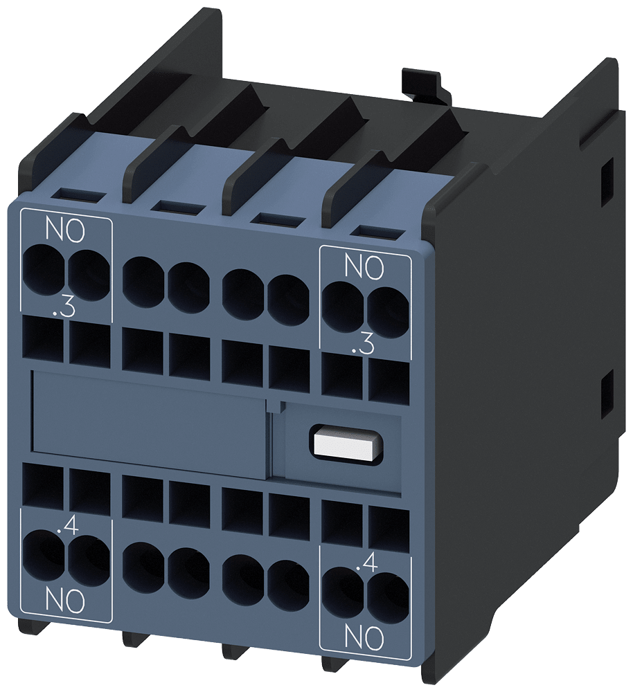 blocchetto di contatti ausiliari, compatibile con lelettronica, sul lato frontale, 2 NO, .3/.4, --/-- , --/-- , .3/.4, via di corrente: 1 NO (compatibile con lelettronica), --, --, 1 NO (compatibile con lelettronica), morsetti a molla, per contattori 3RT2 e contattori ausiliari 3RH2 contatto ausiliario SIRIUS 3RH29 per lampliamento dei contatti ausiliari nel circuito di comando. I blocchetti di contatti ausiliari frontali 3RH29 possono essere montati senza attrezzi indipendentemente dalla grandezza costruttiva sui contattori 3RT2 e sui contattori ausiliari 3RH2. I blocchetti di contatti ausiliari 3RH19/3RH29 sono fornibili come varianti per il montaggio frontale o laterale, con fino a quattro contatti NO con commutazione istantanea o fino a due contatti NO e NC anticipati. I blocchetti di contatti ausiliari possono essere in esecuzione con elementi di contatto a guida forzata in contattori ausiliari 3RH o anche come contatti speculari in contattori di potenza 3RT. Essi sono sempre fornibili con morsetti a vite e morsetti a molla. Semplice, efficiente, sempre attuale - il sistema modulare SIRIUS.