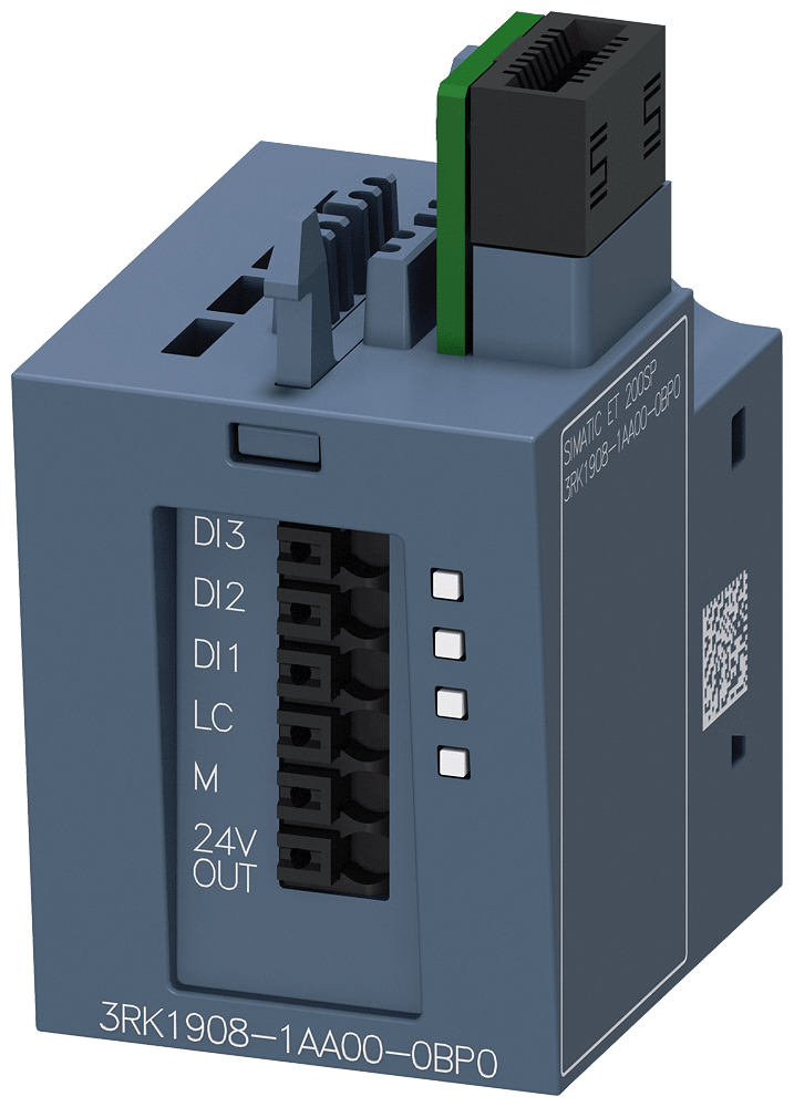 3DI/LC-Modul (morsetti di collegamento) per avviatori motore ET 200SP Control Module 3DI/LC SIMATIC ET 200SP per lampliamento dellavviatore motore e tre ingressi per funzioni di avviatore motore locali come ad es. comando manuale locale, realizzazione diingressi veloci o disinserzione alla posizione finale. Il sistema di periferia decentrata ET 200SP sostituisce il comprovato sistema ET 200S. Avviatori motore ET 200SP - flessibili. Performanti. Salvaspazio.