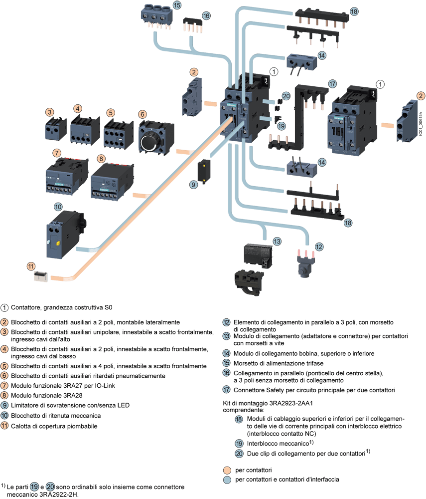 SIEMENS - SIE3RT20251AC24 Contattore, AC-3e, 17 A/7,5 kW/400 V, a 3 poli, AC 24 V, 50/60 Hz, 2NO+2NC, morsetti a vite