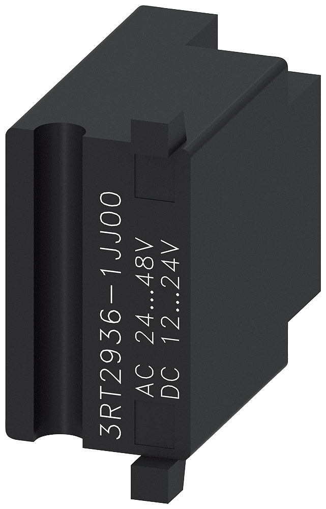 limitatore di sovratensione, varistore con LED, AC 24...48 V, 50/60 Hz, DC 12...24 V, per contattori 3RT2.3 e 3RT2.4 Il limitatore di sovratensione può essere inserito assai facilmente nellapposito scomparto presente nel contattore e senza effetti sulle dimensioni esterne. Semplice, efficiente, sempre attuale - il sistema modulare SIRIUS.