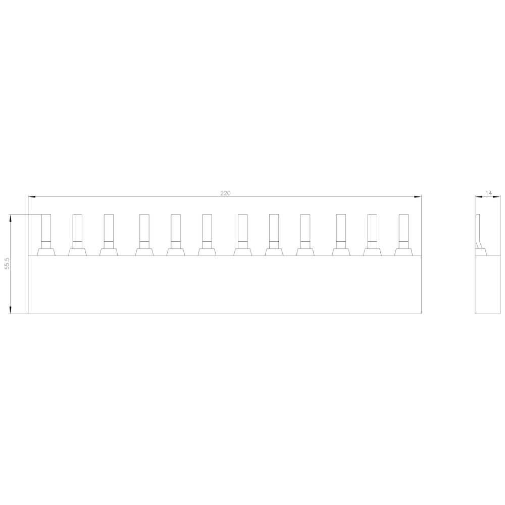 Sbarra collettrice trifase per 4 interruttori automatici grandezza costruttiva S2 interdistanza modulare: 55 mm Semplice, efficiente, sempre attuale - il sistema modulare SIRIUS.