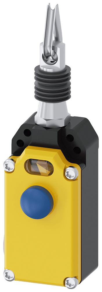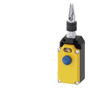 interruttore a fune custodia in metallo, 2x M20 x 1,5; con coperchio giallo, 2 NC/1 NO, con blocco EN ISO 13850 e sblocco a pulsante per lunghezze della fune fino a 5 m interruttore a fune SIRIUS 3SE7 per la sorveglianza o come dispositivo di ARRESTO DI EMERGENZA per parti dimpianto particolarmente pericolose, ad es. per nastri trasportatori. Con gli interruttori a fune è possibile realizzare funzioni di comando e di ARRESTO DI EMERGENZA per ogni esigenza. Gli apparecchi sono semplici da bloccare e dispongono di un pulsante di ARRESTO DI EMERGENZA integrato e di una visualizzazione a LED visibile anche a grande distanza. Gli interruttori soddisfano i massimi requisiti disicurezza secondo PL e o SIL 3. Essi sono disponibili con lunghezze di fune diverse, combinazioni di elementi di contatto, con indicatori a LED o pulsante a fungo di ARRESTO DI EMERGENZA. Le varianti con blocco sono fornite con sblocco a pressione, a chiave o a rotazione. Come accessori sono disponibili funi di acciaio con guaina in plastica rossa in diverse lunghezze con rispettivi accessori di fissaggio. Safety is a SIRIUS business.