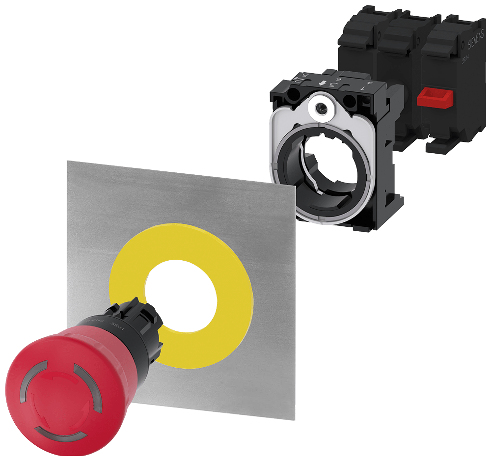 pulsante a fungo di ARRESTO DI EMERGENZA, illuminabile, 22 mm, rotondo, in plastica, rosso, 40 mm, permanente con blocco positivo, secondo DIN EN ISO 13850, sblocco a rotazione Pulsante a fungo di ARRESTO DI EMERGENZA SIRIUS ACT secondo EN ISO 13850 per il comando di applicazioni relative alla sicurezza a prova di manomissione. Siemens offre, sotto il nome commerciale SIRIUS ACT, un portfolio esclusivo di dispositivi di comando e segnalazione con omologazioni di prodotto per il mercato mondiale in tre moderne serie di design in robusto metallo puro e plastica pregiata.Linnovativo concetto di innesto a scatto semplifica talmente il montaggio che per eseguirlo basta una sola mano e non servono attrezzi speciali. Per i fori di montaggio sono sufficienti semplici fori non scanalati, essendo già integrata una protezione antirotazione al 100 %.Grazie al grado di protezione elevato i robusti apparecchi sono adatti allimpiego industriale e in ambiente esterno. È persino possibile la pulizia con getto ad alta pressione. Né polvere, né oli, né liscivia possono comprometterne il funzionamento affidabile.Oltre che con il cablaggio standard, gli apparecchi possono essere collegati al controllore anche tramite PROFINET, AS-Interface oppure IO-Link. Potete così ridurreil vostro onere di cablaggio, minimizzare le fonti di errore e ottenere maggiore flessibilità.Il configuratore online grafico supporta in modo confortevole la scelta e lordinazione di singoli apparecchi, pulsantiere e iscrizioni. È disponibile una documentazione completa (ad es. manuale, dati 3D, schema di collegamento). Esecuzioni fornibili: diametro del fungo di 30/40/60 mm, luminoso/non luminoso, sblocco a trazione/a rotazione/a chiave. Avvertenza: Apparecchio singolo, supporti e moduli devono essere ordinati separatamente. SIRIUS ACT - Performance in Action nel comando e nella segnalazione. Semplici da montare, altamente performanti, semplicemente perfetti.