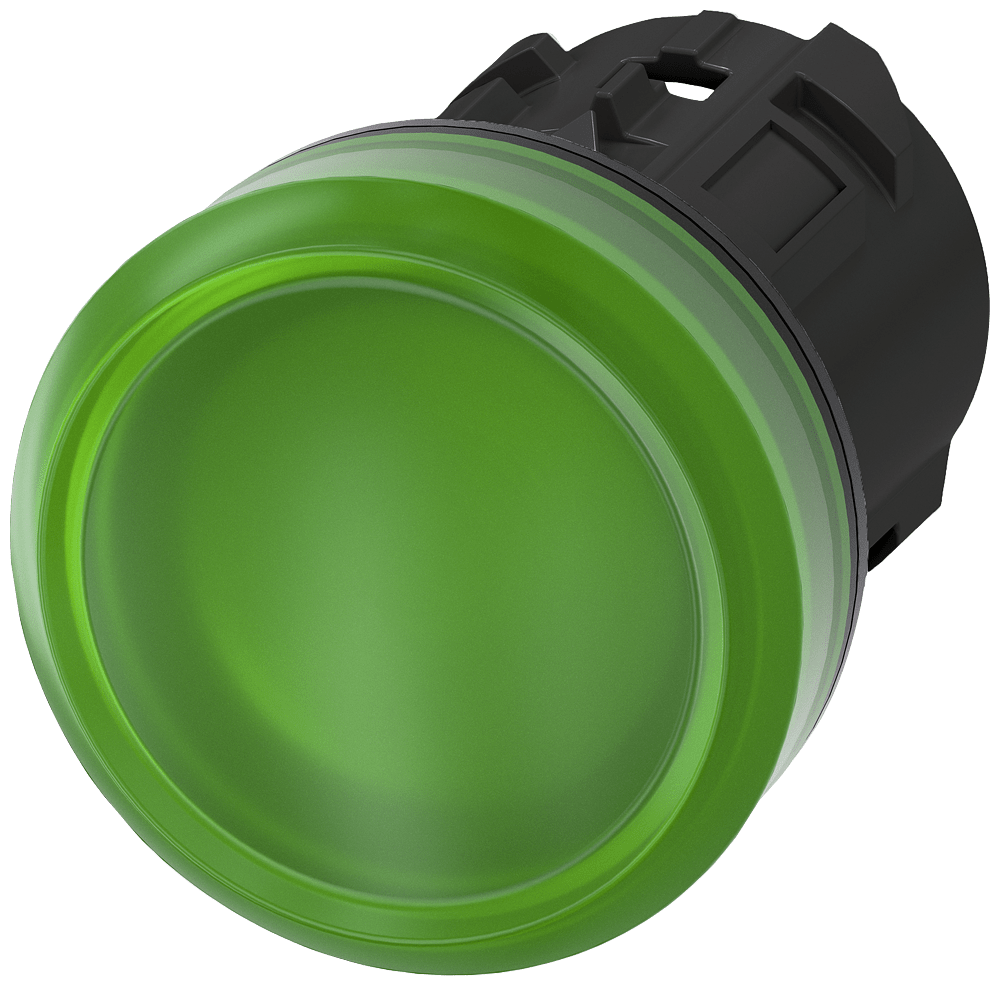 indicatore luminoso, 22 mm, rotondo, in plastica, verde, lente, liscia Indicatore luminoso SIRIUS ACT per la segnalazione di stati di commutazione o guasti in impianti, con forte intensità luminosa grazie alla tecnologia LED ad efficienza energetica. Siemens offre, sotto il nome commerciale SIRIUS ACT, un portfolio esclusivo di dispositivi di comando e segnalazione con omologazioni di prodotto per il mercato mondiale in tre moderne serie di design in robusto metallo puro e plastica pregiata.Linnovativo concetto di innesto a scatto semplifica talmente il montaggio che per eseguirlo basta una sola mano e non servono attrezzi speciali. Per i fori di montaggio sono sufficienti semplici fori non scanalati, essendo già integrata una protezione antirotazione al100 %.Grazie al grado di protezione elevato i robusti apparecchi sono adatti allimpiego industriale e in ambiente esterno. È persino possibile la pulizia con getto ad alta pressione. Né polvere, né oli, né liscivia possono comprometterne il funzionamentoaffidabile.Oltre che con il cablaggio standard, gli apparecchi possono essere collegati al controllore anche tramite PROFINET, AS-Interface oppure IO-Link. Potete così ridurre il vostro onere di cablaggio, minimizzare le fonti di errore e ottenere maggiore flessibilità.Il configuratore online grafico supporta in modo confortevole la scelta e lordinazione di singoli apparecchi, pulsantiere e iscrizioni. È disponibile una documentazione completa (ad es. manuale, dati 3D, schema di collegamento). Esecuzionifornibili: più colori, diverse varianti di tensione. Avvertenza: Apparecchio singolo, supporti e moduli devono essere ordinati separatamente. SIRIUS ACT - Performance in Action nel comando e nella segnalazione. Semplici da montare, altamente performanti,semplicemente perfetti.