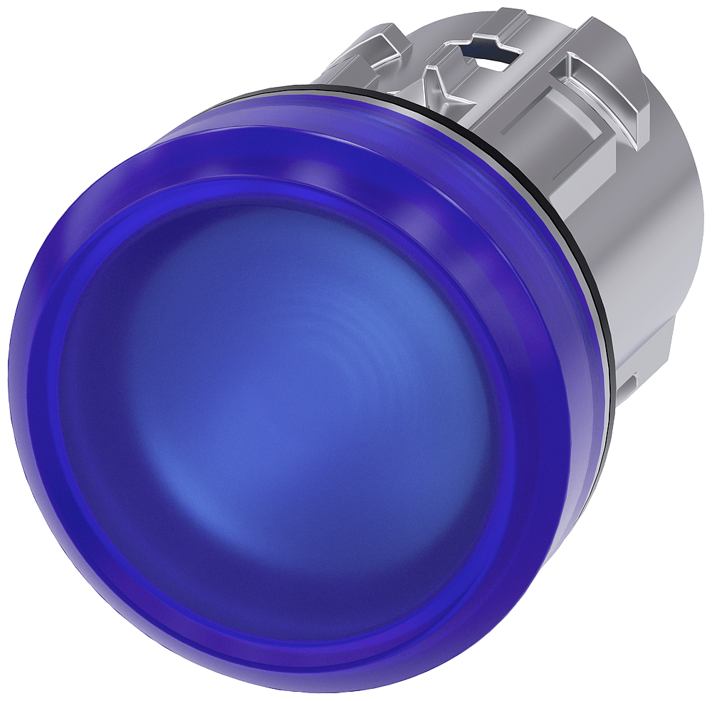 indicatore luminoso, 22 mm, rotondo, in metallo, lucido, blu, lente, liscia Indicatore luminoso SIRIUS ACT per la segnalazione di stati di commutazione o guasti in impianti, con forte intensità luminosa grazie alla tecnologia LED ad efficienza energetica. Siemens offre, sotto il nome commerciale SIRIUS ACT, un portfolio esclusivo di dispositivi di comando e segnalazione con omologazioni di prodotto per il mercato mondiale in tre moderne serie di design in robusto metallo puro e plastica pregiata.Linnovativo concetto di innesto a scatto semplifica talmente il montaggio che per eseguirlo basta una sola mano e non servono attrezzi speciali. Per i fori di montaggio sono sufficienti semplici fori non scanalati, essendo già integrata una protezione antirotazione al 100 %.Grazie al grado di protezione elevato i robusti apparecchi sono adatti allimpiego industriale e in ambiente esterno. È persino possibile la pulizia con getto ad alta pressione. Né polvere, né oli, né liscivia possono comprometterne il funzionamento affidabile.Oltre che con il cablaggio standard, gli apparecchi possono essere collegati al controllore anche tramite PROFINET, AS-Interface oppure IO-Link. Potete così ridurre il vostro onere di cablaggio, minimizzare le fonti di errore e ottenere maggiore flessibilità.Il configuratore online grafico supporta in modo confortevole la scelta e lordinazione di singoli apparecchi, pulsantiere e iscrizioni. È disponibile una documentazione completa (ad es. manuale, dati 3D, schema di collegamento). Esecuzioni fornibili: più colori, diverse varianti di tensione. Avvertenza: Apparecchio singolo, supporti e moduli devono essere ordinati separatamente. SIRIUS ACT - Performance in Action nel comando e nella segnalazione. Semplici da montare, altamente performanti, semplicemente perfetti.