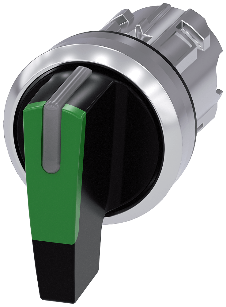 selettore, illuminabile, 22 mm, rotondo, in metallo, lucido, verde, selettore, lungo, 3 posizioni di commutazione I>O
