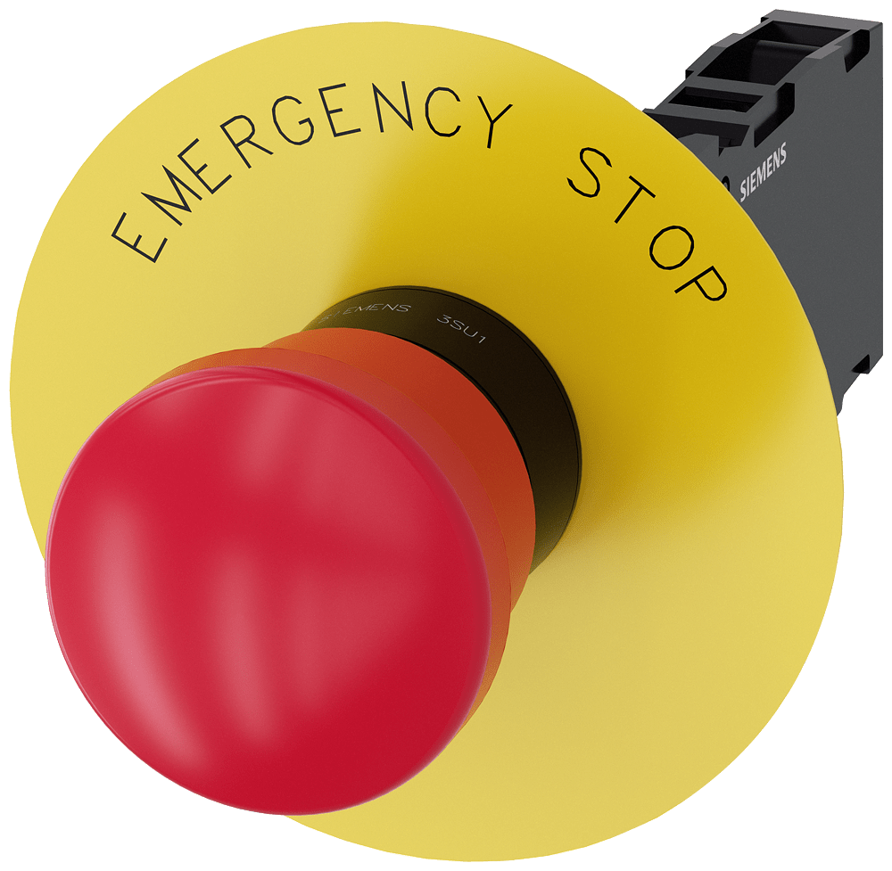 pulsante a fungo di ARRESTO DI EMERGENZA, 22 mm, rotondo, plastica, rosso, 40 mm, permanente con blocco positivo, secondo EN ISO 13850, sblocco a trazione, con disco targhetta giallo, iscrizione: EMERGENCY STOP, con supporto, 1 NO+1 NC, morsetti a vite Pulsante a fungo di ARRESTO DI EMERGENZA SIRIUS ACT secondo EN ISO 13850 per il comando di applicazioni relative alla sicurezza a prova di manomissione. Siemens offre, sotto il nome commerciale SIRIUS ACT, un portfolio esclusivo di dispositivi di comando esegnalazione con omologazioni di prodotto per il mercato mondiale in tre moderne serie di design in robusto metallo puro e plastica pregiata.Linnovativo concetto di innesto a scatto semplifica talmente il montaggio che per eseguirlo basta una sola mano enon servono attrezzi speciali. Per i fori di montaggio sono sufficienti semplici fori non scanalati, essendo già integrata una protezione antirotazione al 100 %.Grazie al grado di protezione elevato i robusti apparecchi sono adatti allimpiego industrialee in ambiente esterno. È persino possibile la pulizia con getto ad alta pressione. Né polvere, né oli, né liscivia possono comprometterne il funzionamento affidabile.Oltre che con il cablaggio standard, gli apparecchi possono essere collegati al controllore anche tramite PROFINET, AS-Interface oppure IO-Link. Potete così ridurre il vostro onere di cablaggio, minimizzare le fonti di errore e ottenere maggiore flessibilità.Il configuratore online grafico supporta in modo confortevole la scelta e lordinazione di singoli apparecchi, pulsantiere e iscrizioni. È disponibile una documentazione completa (ad es. manuale, dati 3D, schema di collegamento). Esecuzioni fornibili: diametro del fungo di 30/40/60 mm, luminoso/non luminoso, sblocco a trazione/a rotazione/a chiave. Avvertenza: Apparecchio completo, fornitura incl. supporto e moduli. SIRIUS ACT - Performance in Action nel comando e nella segnalazione. Semplici da montare, altamente performanti, semplicemente perfetti.