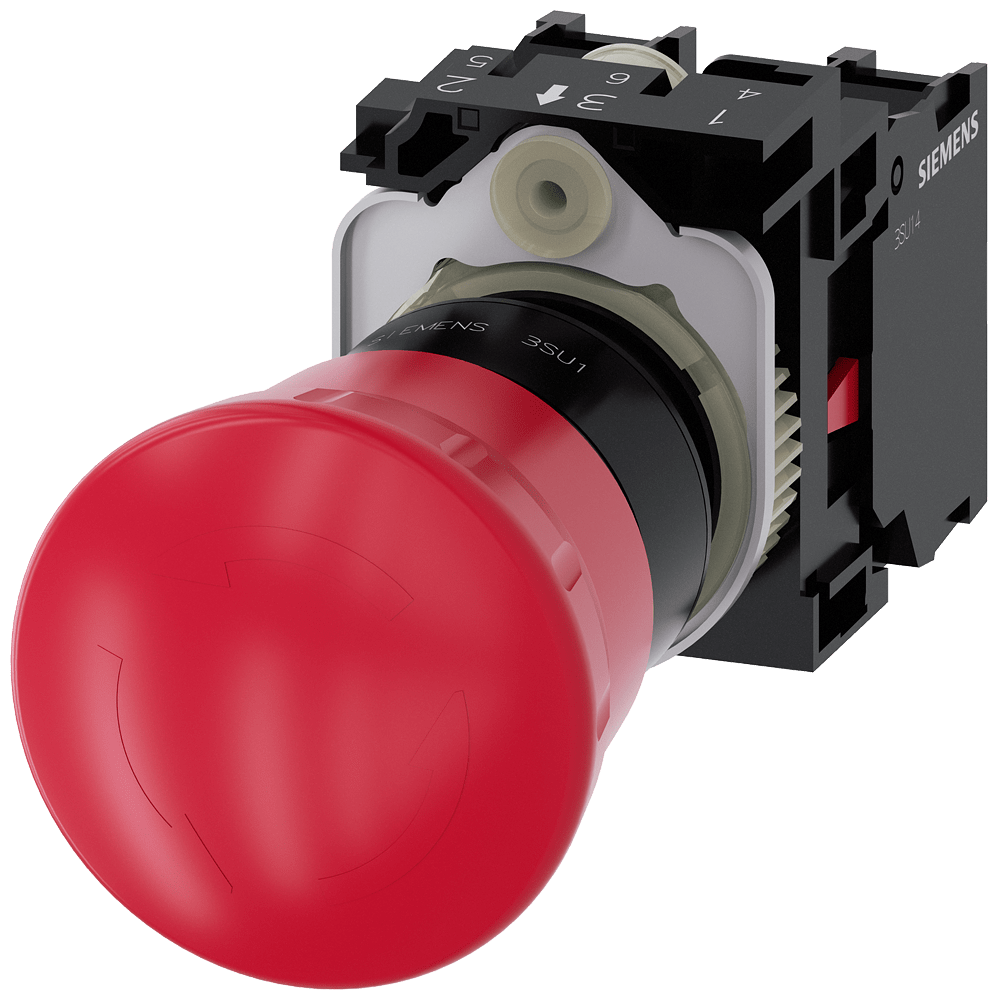 pulsante a fungo di ARRESTO DI EMERGENZA, 22 mm, rotondo, in plastica, rosso, 40 mm, permanente con blocco positivo, a norma DIN EN ISO 13850, sblocco a rotazione, senza disco targhetta giallo, con supporto, 1 NC, 1 NC, morsetto a vite Pulsante a fungo di ARRESTO DI EMERGENZA SIRIUS ACT secondo EN ISO 13850 per il comando di applicazioni relative alla sicurezza a prova di manomissione. Siemens offre, sotto il nome commerciale SIRIUS ACT, un portfolio esclusivo di dispositivi di comando e segnalazione conomologazioni di prodotto per il mercato mondiale in tre moderne serie di design in robusto metallo puro e plastica pregiata.Linnovativo concetto di innesto a scatto semplifica talmente il montaggio che per eseguirlo basta una sola mano e non servono attrezzi speciali. Per i fori di montaggio sono sufficienti semplici fori non scanalati, essendo già integrata una protezione antirotazione al 100 %.Grazie al grado di protezione elevato i robusti apparecchi sono adatti allimpiego industriale e in ambiente esterno. È persino possibile la pulizia con getto ad alta pressione. Né polvere, né oli, né liscivia possono comprometterne il funzionamento affidabile.Oltre che con il cablaggio standard, gli apparecchi possono essere collegati al controllore anche tramitePROFINET, AS-Interface oppure IO-Link. Potete così ridurre il vostro onere di cablaggio, minimizzare le fonti di errore e ottenere maggiore flessibilità.Il configuratore online grafico supporta in modo confortevole la scelta e lordinazione di singoli apparecchi, pulsantiere e iscrizioni. È disponibile una documentazione completa (ad es. manuale, dati 3D, schema di collegamento). Esecuzioni fornibili: diametro del fungo di 30/40/60 mm, luminoso/non luminoso, sblocco a trazione/a rotazione/a chiave. Avvertenza: Apparecchio completo, fornitura incl. supporto e moduli. SIRIUS ACT - Performance in Action nel comando e nella segnalazione. Semplici da montare, altamente performanti, semplicemente perfetti.