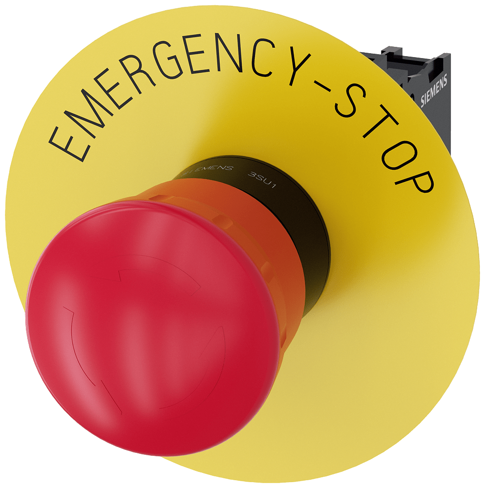 pulsante a fungo di ARRESTO DI EMERGENZA, 22 mm, rotondo, in plastica, rosso, 40 mm, permanente con blocco positivo, a norma DIN EN ISO 13850, sblocco a rotazione, con disco targhetta giallo, iscrizione: EMERGENCY STOP, con supporto, 1 NC, 1 NC, morsettoa vite Pulsante a fungo di ARRESTO DI EMERGENZA SIRIUS ACT secondo EN ISO 13850 per il comando di applicazioni relative alla sicurezza a prova di manomissione. Siemens offre, sotto il nome commerciale SIRIUS ACT, un portfolio esclusivo di dispositivi di comando e segnalazione con omologazioni di prodotto per il mercato mondiale in tre moderne serie di design in robusto metallo puro e plastica pregiata.Linnovativo concetto di innesto a scatto semplifica talmente il montaggio che per eseguirlo basta una sola mano e non servono attrezzi speciali. Per i fori di montaggio sono sufficienti semplici fori non scanalati, essendo già integrata una protezione antirotazione al 100 %.Grazie al grado di protezione elevato i robusti apparecchi sono adatti allimpiego industriale e in ambiente esterno. È persino possibile la pulizia con getto ad alta pressione. Né polvere, né oli, né liscivia possono comprometterne il funzionamento affidabile.Oltre che con il cablaggio standard, gli apparecchi possono essere collegati alcontrollore anche tramite PROFINET, AS-Interface oppure IO-Link. Potete così ridurre il vostro onere di cablaggio, minimizzare le fonti di errore e ottenere maggiore flessibilità.Il configuratore online grafico supporta in modo confortevole la scelta e lordinazione di singoli apparecchi, pulsantiere e iscrizioni. È disponibile una documentazione completa (ad es. manuale, dati 3D, schema di collegamento). Esecuzioni fornibili: diametro del fungo di 30/40/60 mm, luminoso/non luminoso, sblocco a trazione/a rotazione/a chiave. Avvertenza: Apparecchio completo, fornitura incl. supporto e moduli. SIRIUS ACT - Performance in Action nel comando e nella segnalazione. Semplici da montare, altamente performanti, semplicemente perfetti.