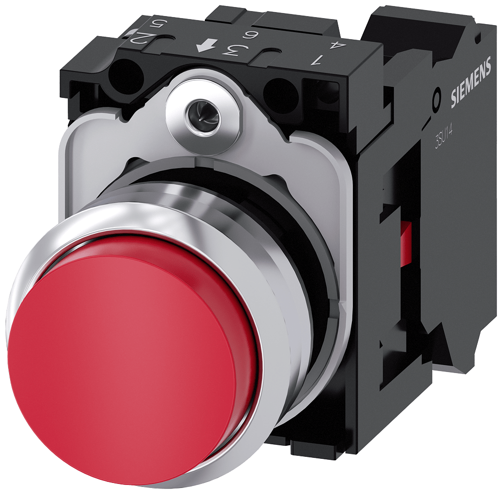 pulsante, 22 mm, rotondo, in metallo, lucido, rosso, bottone, sporgente, ad impulso, con supporto, 1 NC, morsetto a molla Pulsante SIRIUS ACT per la commutazione e il comando di utilizzatori elettrici. Siemens offre, sotto il nome commerciale SIRIUS ACT,un portfolio esclusivo di dispositivi di comando e segnalazione con omologazioni di prodotto per il mercato mondiale in tre moderne serie di design in robusto metallo puro e plastica pregiata.Linnovativo concetto di innesto a scatto semplifica talmente il montaggio che per eseguirlo basta una sola mano e non servono attrezzi speciali. Per i fori di montaggio sono sufficienti semplici fori non scanalati, essendo già integrata una protezione antirotazione al 100 %.Grazie al grado di protezione elevato i robusti apparecchi sono adatti allimpiego industriale e in ambiente esterno. È persino possibile la pulizia con getto ad alta pressione. Né polvere, né oli, né liscivia possono comprometterne il funzionamento affidabile.Oltre che con il cablaggio standard, gli apparecchi possono essere collegati al controllore anche tramite PROFINET, AS-Interface oppure IO-Link. Potete così ridurre il vostro onere di cablaggio, minimizzare le fonti di errore e ottenere maggiore flessibilità.Il configuratore online grafico supporta in modo confortevole la scelta e lordinazione di singoli apparecchi, pulsantiere e iscrizioni. È disponibile una documentazione completa (ad es. manuale, dati 3D, schema di collegamento). Esecuzioni fornibili: più colori, luminoso/non luminoso, con/senza iscrizione, comando permanente/ad impulso, diverse altezze di bottone e ghiera. Avvertenza: Apparecchio completo, fornitura incl. supporto e moduli. SIRIUS ACT - Performance in Action nel comando e nella segnalazione. Semplici da montare, altamente performanti, semplicemente perfetti.