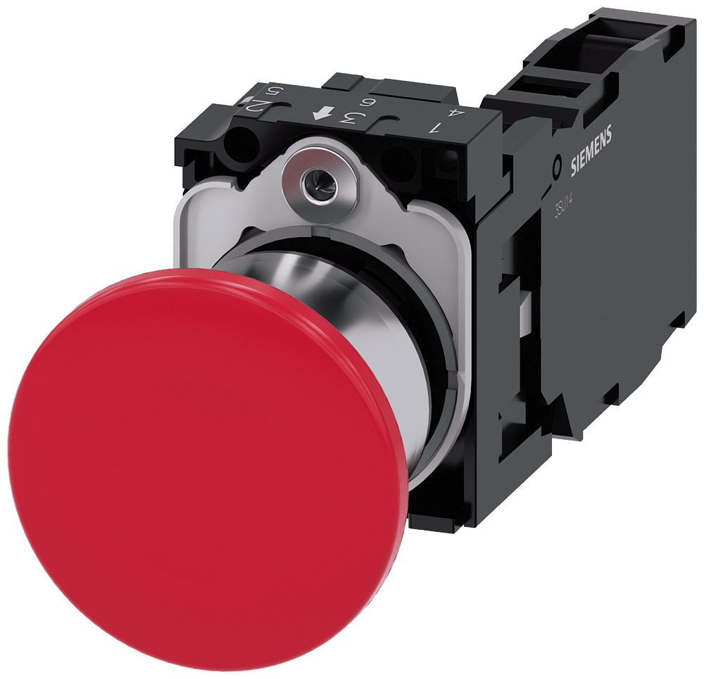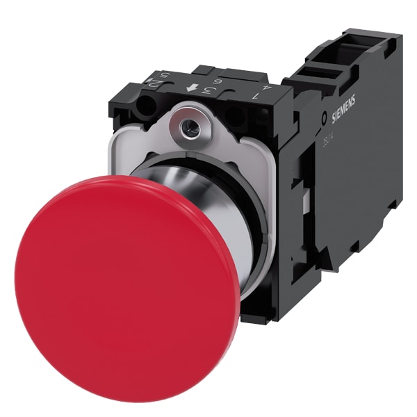 pulsante a fungo, 22 mm, rotondo, in metallo, lucido, rosso, 40 mm, permanente, sblocco a trazione, con supporto, 1 NO+1 NC, morsetto a vite Pulsante a fungo SIRIUS ACT con operatore grande per lazionamento comodo con tutta la mano. Siemens offre, sotto il nome commerciale SIRIUS ACT, un portfolio esclusivo di dispositivi di comando e segnalazione con omologazioni di prodotto per il mercato mondiale in tre moderne serie di design in robusto metallo puro e plastica pregiata.Linnovativo concetto di innestoa scatto semplifica talmente il montaggio che per eseguirlo basta una sola mano e non servono attrezzi speciali. Per i fori di montaggio sono sufficienti semplici fori non scanalati, essendo già integrata una protezione antirotazione al 100 %.Grazie al grado di protezione elevato i robusti apparecchi sono adatti allimpiego industriale e in ambiente esterno. È persino possibile la pulizia con getto ad alta pressione. Né polvere, né oli, né liscivia possono comprometterne il funzionamento affidabile.Oltre che con il cablaggio standard, gli apparecchi possono essere collegati al controllore anche tramite PROFINET, AS-Interface oppure IO-Link. Potete così ridurre il vostro onere di cablaggio, minimizzare le fonti di errore e ottenere maggiore flessibilità.Ilconfiguratore online grafico supporta in modo confortevole la scelta e lordinazione di singoli apparecchi, pulsantiere e iscrizioni. È disponibile una documentazione completa (ad es. manuale, dati 3D, schema di collegamento). Esecuzioni fornibili: diametro del fungo di 30/40/60 mm, più colori, luminoso/non luminoso, comando permanente/ad impulso, sblocco a trazione/a rotazione. Avvertenza: Apparecchio completo, fornitura incl. supporto e moduli. SIRIUS ACT - Performance in Action nel comando e nella segnalazione. Semplici da montare, altamente performanti, semplicemente perfetti.
