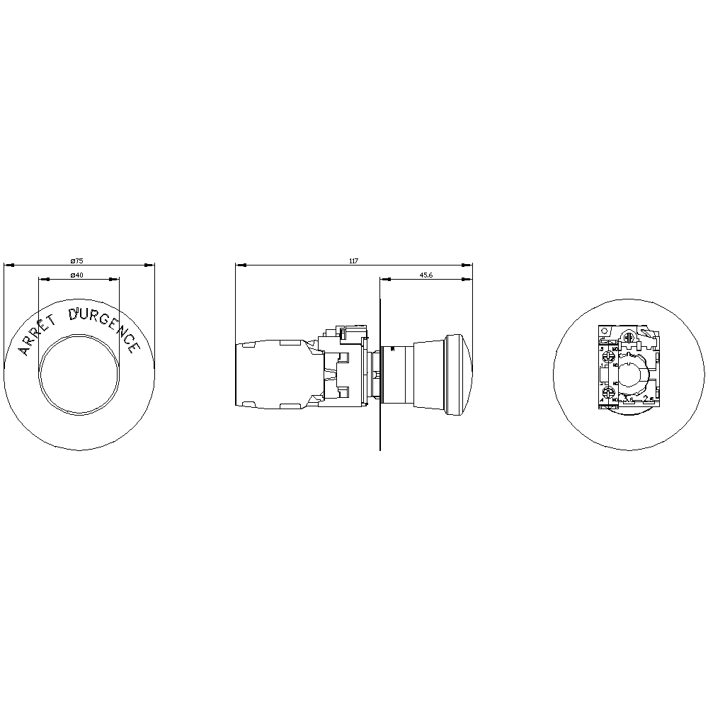 pulsante a fungo di ARRESTO DI EMERGENZA, 22 mm, rotondo, in metallo, lucido, rosso, 40 mm, permanente con blocco positivo, secondo DIN EN ISO 13850, sblocco a trazione, con disco targhetta giallo, iscrizione: Arrêt durgence con supporto, 1 NO+1 NC, morsetto a vite Pulsante a fungo di ARRESTO DI EMERGENZA SIRIUS ACT secondo EN ISO 13850 per il comando di applicazioni relative alla sicurezza a prova di manomissione. Siemens offre, sotto il nome commerciale SIRIUS ACT, un portfolio esclusivo di dispositividi comando e segnalazione con omologazioni di prodotto per il mercato mondiale in tre moderne serie di design in robusto metallo puro e plastica pregiata.Linnovativo concetto di innesto a scatto semplifica talmente il montaggio che per eseguirlo basta una sola mano e non servono attrezzi speciali. Per i fori di montaggio sono sufficienti semplici fori non scanalati, essendo già integrata una protezione antirotazione al 100 %.Grazie al grado di protezione elevato i robusti apparecchi sono adatti allimpiego industriale e in ambiente esterno. È persino possibile la pulizia con getto ad alta pressione. Né polvere, né oli, né liscivia possono comprometterne il funzionamento affidabile.Oltre che con il cablaggio standard, gli apparecchi possono essere collegati al controllore anche tramite PROFINET, AS-Interface oppure IO-Link. Potete così ridurre il vostro onere di cablaggio, minimizzare le fonti di errore e ottenere maggiore flessibilità.Il configuratore online grafico supporta in modo confortevole la sceltae lordinazione di singoli apparecchi, pulsantiere e iscrizioni. È disponibile una documentazione completa (ad es. manuale, dati 3D, schema di collegamento). Esecuzioni fornibili: diametro del fungo di 30/40/60 mm, luminoso/non luminoso, sblocco a trazione/a rotazione/a chiave. Avvertenza: Apparecchio completo, fornitura incl. supporto e moduli. SIRIUS ACT - Performance in Action nel comando e nella segnalazione. Semplici da montare, altamente performanti, semplicemente perfetti.