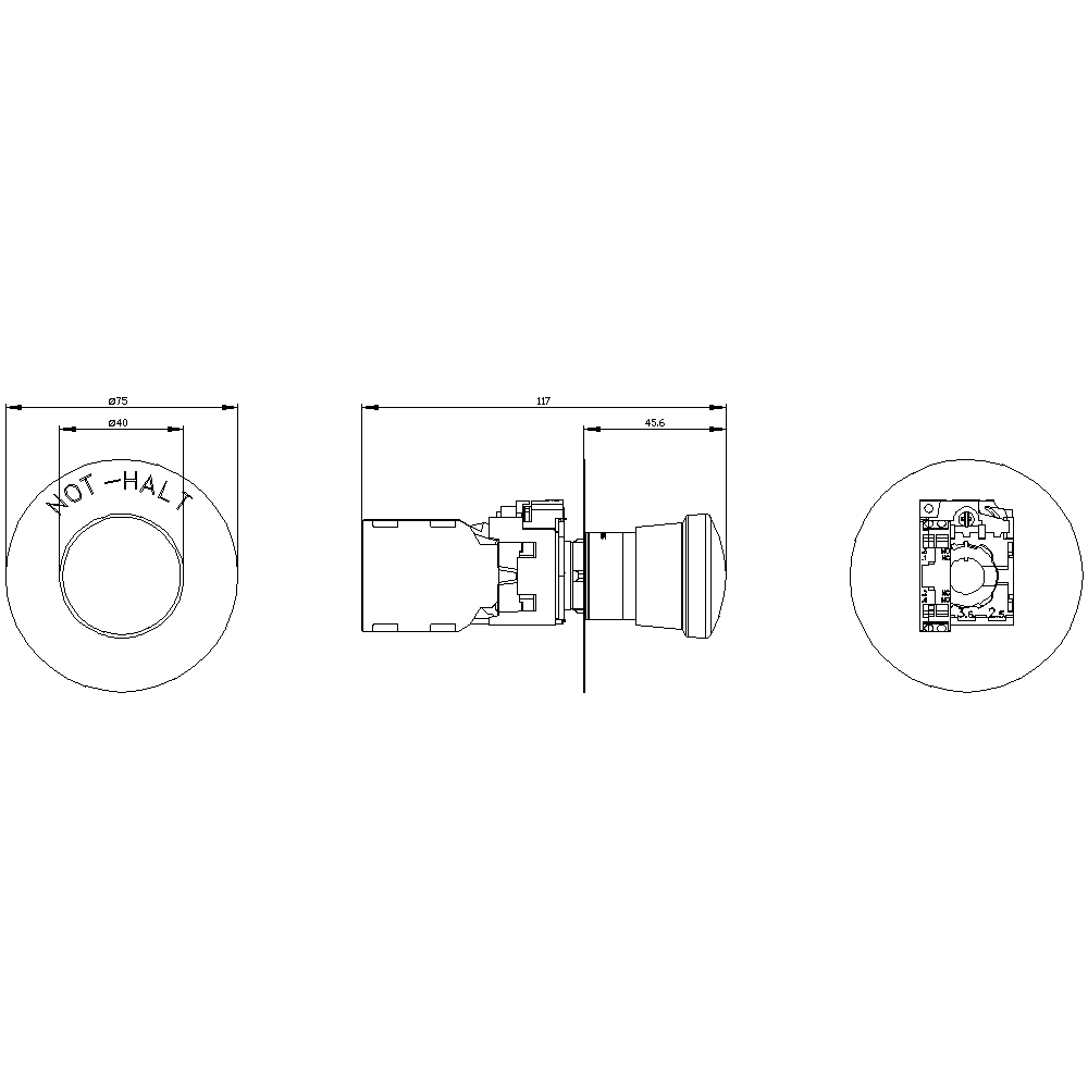pulsante a fungo di ARRESTO DI EMERGENZA, 22 mm, rotondo, metallo, lucido, rosso, 40 mm, permanente con blocco positivo, secondo EN ISO 13850, sblocco a trazione, con disco targhetta giallo, iscrizione: NOT-HALT, con supporto, 1 NO+1 NC, morsetti a mollaPulsante a fungo di ARRESTO DI EMERGENZA SIRIUS ACT secondo EN ISO 13850 per il comando di applicazioni relative alla sicurezza a prova di manomissione. Siemens offre, sotto il nome commerciale SIRIUS ACT, un portfolio esclusivo di dispositivi di comandoe segnalazione con omologazioni di prodotto per il mercato mondiale in tre moderne serie di design in robusto metallo puro e plastica pregiata.Linnovativo concetto di innesto a scatto semplifica talmente il montaggio che per eseguirlo basta una sola manoe non servono attrezzi speciali. Per i fori di montaggio sono sufficienti semplici fori non scanalati, essendo già integrata una protezione antirotazione al 100 %.Grazie al grado di protezione elevato i robusti apparecchi sono adatti allimpiego industriale e in ambiente esterno. È persino possibile la pulizia con getto ad alta pressione. Né polvere, né oli, né liscivia possono comprometterne il funzionamento affidabile.Oltre che con il cablaggio standard, gli apparecchi possono essere collegati al controllore anche tramite PROFINET, AS-Interface oppure IO-Link. Potete così ridurre il vostro onere di cablaggio, minimizzare le fonti di errore e ottenere maggiore flessibilità.Il configuratore online grafico supporta in modo confortevole la scelta e lordinazione di singoli apparecchi, pulsantiere e iscrizioni. È disponibile una documentazione completa (ad es. manuale, dati 3D, schema di collegamento). Esecuzioni fornibili: diametro del fungo di 30/40/60 mm, luminoso/non luminoso, sblocco a trazione/a rotazione/a chiave. Avvertenza: Apparecchio completo, fornitura incl. supporto e moduli. SIRIUS ACT - Performance in Action nel comando e nella segnalazione. Semplici da montare, altamente performanti, semplicemente perfetti.