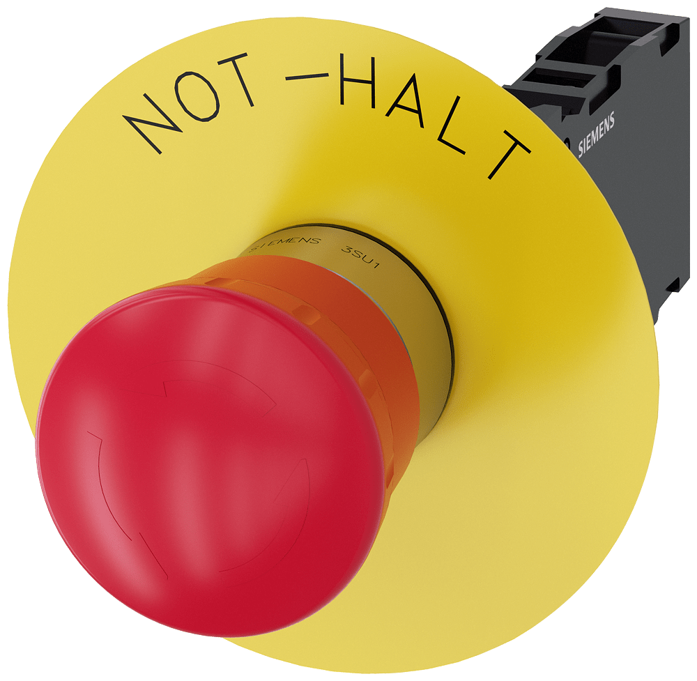 pulsante a fungo di ARRESTO DI EMERGENZA, 22 mm, rotondo, metallo, lucido, rosso, 40 mm, permanente con blocco positivo, secondo EN ISO 13850, sblocco a rotazione, con disco targhetta giallo, iscrizione: NOT-HALT, con supporto, 1 NO+1 NC, morsetti a vitePulsante a fungo di ARRESTO DI EMERGENZA SIRIUS ACT secondo EN ISO 13850 per il comando di applicazioni relative alla sicurezza a prova di manomissione. Siemens offre, sotto il nome commerciale SIRIUS ACT, un portfolio esclusivo di dispositivi di comandoe segnalazione con omologazioni di prodotto per il mercato mondiale in tre moderne serie di design in robusto metallo puro e plastica pregiata.Linnovativo concetto di innesto a scatto semplifica talmente il montaggio che per eseguirlo basta una sola manoe non servono attrezzi speciali. Per i fori di montaggio sono sufficienti semplici fori non scanalati, essendo già integrata una protezione antirotazione al 100 %.Grazie al grado di protezione elevato i robusti apparecchi sono adatti allimpiego industriale e in ambiente esterno. È persino possibile la pulizia con getto ad alta pressione. Né polvere, né oli, né liscivia possono comprometterne il funzionamento affidabile.Oltre che con il cablaggio standard, gli apparecchi possono essere collegati al controllore anche tramite PROFINET, AS-Interface oppure IO-Link. Potete così ridurre il vostro onere di cablaggio, minimizzare le fonti di errore e ottenere maggiore flessibilità.Il configuratore online grafico supporta in modo confortevole la scelta e lordinazione di singoli apparecchi, pulsantiere e iscrizioni. È disponibile una documentazione completa (ad es. manuale, dati 3D, schema di collegamento). Esecuzioni fornibili: diametro del fungo di 30/40/60 mm, luminoso/non luminoso, sblocco a trazione/a rotazione/a chiave. Avvertenza: Apparecchio completo, fornitura incl. supporto e moduli. SIRIUS ACT - Performance in Action nel comando e nella segnalazione. Semplici da montare, altamente performanti, semplicemente perfetti.