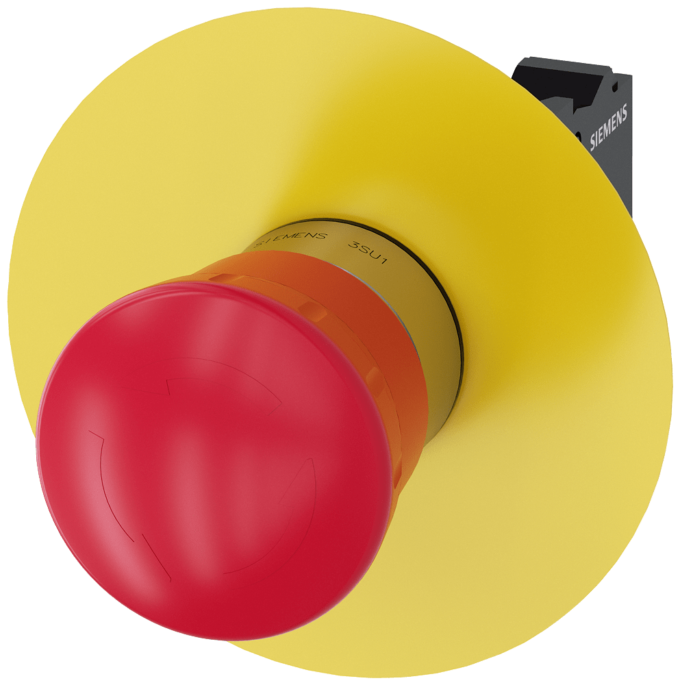 pulsante a fungo di ARRESTO DI EMERGENZA, 22 mm, rotondo, in metallo, lucido, rosso, 40 mm, permanente con blocco positivo, secondo EN ISO 13850, sblocco a rotazione, con disco targhetta giallo, senza iscrizione, con supporto, 1 NC, 1 NC, morsetti a molla, fissaggio su piastra frontale Pulsante a fungo di ARRESTO DI EMERGENZA SIRIUS ACT secondo EN ISO 13850 per il comando di applicazioni relative alla sicurezza a prova di manomissione. Siemens offre, sotto il nome commerciale SIRIUS ACT, un portfolio esclusivo di dispositivi di comando e segnalazione con omologazioni di prodotto per il mercato mondiale in tre moderne serie di design in robusto metallo puro e plastica pregiata.Linnovativo concetto di innesto a scatto semplifica talmente il montaggio che per eseguirlo basta una sola mano e non servono attrezzi speciali. Per i fori di montaggio sono sufficienti semplici fori non scanalati, essendo già integrata una protezione antirotazione al 100 %.Grazie al grado di protezione elevato i robusti apparecchi sono adatti allimpiego industriale e in ambiente esterno. È persino possibile la pulizia con getto ad alta pressione. Né polvere, né oli, né liscivia possono comprometterne il funzionamento affidabile.Oltre che con il cablaggio standard, gli apparecchi possono essere collegati al controllore anche tramite PROFINET, AS-Interface oppure IO-Link. Potete così ridurre il vostro onere di cablaggio, minimizzare le fonti di errore e ottenere maggiore flessibilità.Il configuratore online grafico supporta in modo confortevole la scelta e lordinazione di singoli apparecchi, pulsantiere e iscrizioni. È disponibile una documentazione completa (ad es. manuale, dati 3D, schema di collegamento). Esecuzioni fornibili: diametro del fungo di 30/40/60 mm, luminoso/non luminoso, sblocco a trazione/a rotazione/a chiave. Avvertenza: Apparecchio completo, fornitura incl. supporto e moduli. SIRIUS ACT - Performance in Action nel comando e nella segnalazione. Semplici da montare, altamente performanti, semplicemente perfetti.