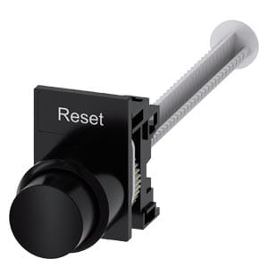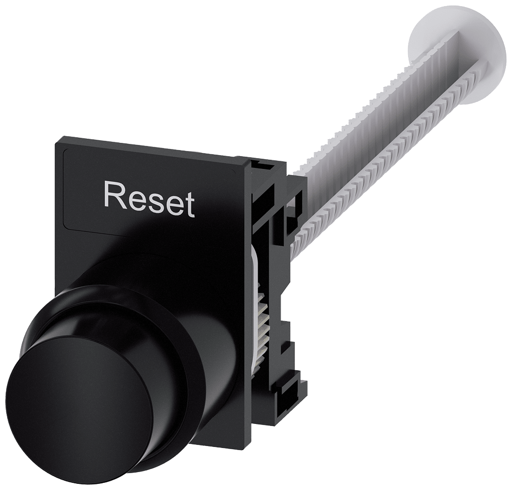 pulsante, compatto, con corsa prolungata (12 mm), 22 mm, rotondo, plastica, nero, bottone, sporgente, ad impulso, con supporto, con asta di prolunga, con portarghetta, cornice in basso quadrata, con targhetta identificativa 12,5 mm x 27 mm, nero, con iscrizione: reset Pulsante SIRIUS ACT per la commutazione e il comando di utilizzatori elettrici. Siemens offre, sotto il nome commerciale SIRIUS ACT, un portfolio esclusivo di dispositivi di comando e segnalazione con omologazioni di prodotto per il mercatomondiale in tre moderne serie di design in robusto metallo puro e plastica pregiata.Linnovativo concetto di innesto a scatto semplifica talmente il montaggio che per eseguirlo basta una sola mano e non servono attrezzi speciali. Per i fori di montaggio sono sufficienti semplici fori non scanalati, essendo già integrata una protezione antirotazione al 100 %.Grazie al grado di protezione elevato i robusti apparecchi sono adatti allimpiego industriale e in ambiente esterno. È persino possibile la pulizia con getto ad alta pressione. Né polvere, né oli, né liscivia possono comprometterne il funzionamento affidabile.Oltre che con il cablaggio standard, gli apparecchi possono essere collegati al controllore anche tramite PROFINET, AS-Interface oppure IO-Link. Potete così ridurre il vostro onere di cablaggio, minimizzare le fonti di errore e ottenere maggiore flessibilità.Il configuratore online grafico supporta in modo confortevole la scelta e lordinazione di singoli apparecchi, pulsantiere e iscrizioni. È disponibile una documentazione completa (ad es. manuale, dati 3D, schema di collegamento). Esecuzioni fornibili: più colori, luminoso/non luminoso, con/senza iscrizione, comando permanente/ad impulso, diverse altezze di bottone e ghiera. Avvertenza: Apparecchio compatto con funzione di commutazione meccanica può essere impiegato solo con lelemento di prolunga (3SU1900-0KG10-0AA0). Fornitura incl. supporto. SIRIUS ACT - Performance in Action nel comando e nella segnalazione. Semplici da montare, altamente performanti, semplicemente perfetti.