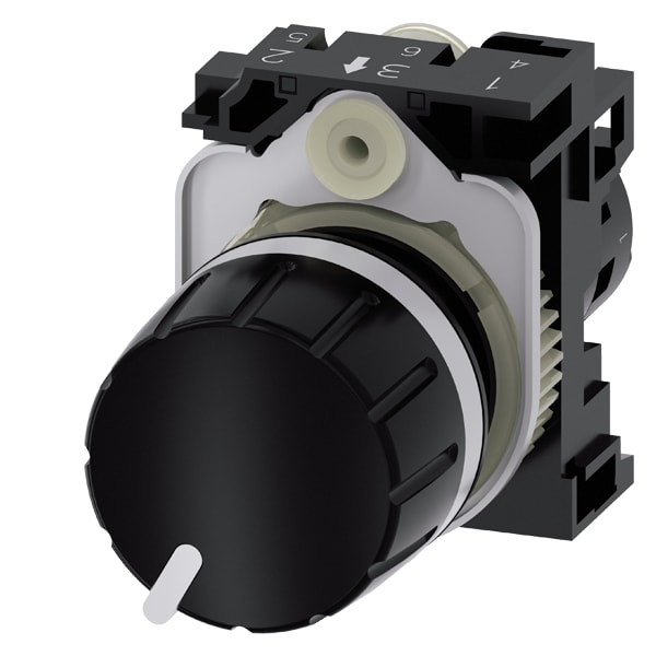 potenziometro, compatto, 22 mm, rotondo, in plastica, nero, 10k ohm, con supporto, morsetto a vite Potenziometro SIRIUS ACT con manopola per la regolazione meccanica di diversi valori di resistenza. Siemens offre, sotto il nome commerciale SIRIUS ACT, unportfolio esclusivo di dispositivi di comando e segnalazione con omologazioni di prodotto per il mercato mondiale in tre moderne serie di design in robusto metallo puro e plastica pregiata.Linnovativo concetto di innesto a scatto semplifica talmente il montaggio che per eseguirlo basta una sola mano e non servono attrezzi speciali. Per i fori di montaggio sono sufficienti semplici fori non scanalati, essendo già integrata una protezione antirotazione al 100 %.Grazie al grado di protezione elevato i robusti apparecchi sono adatti allimpiego industriale e in ambiente esterno. È persino possibile la pulizia con getto ad alta pressione. Né polvere, né oli, né liscivia possono comprometterne il funzionamento affidabile.Oltre che con il cablaggio standard, gliapparecchi possono essere collegati al controllore anche tramite PROFINET, AS-Interface oppureIO-Link. Potete così ridurre il vostro onere di cablaggio, minimizzare le fonti di errore e ottenere maggiore flessibilità.Il configuratore online grafico supporta in modo confortevole la scelta e lordinazione di singoli apparecchi, pulsantiere e iscrizioni. È disponibile una documentazione completa (ad es. manuale, dati 3D, schema di collegamento). Esecuzioni fornibili: 6 diversi valori di resistenza. Avvertenza: Apparecchio compatto con potenziometro integrato. Fornitura incl. supporto. SIRIUS ACT - Performance in Action nel comando e nella segnalazione. Semplici da montare, altamente performanti, semplicemente perfetti.