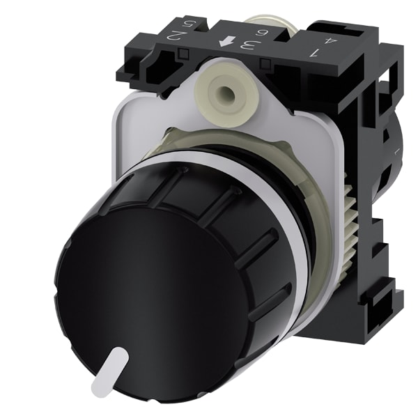 potenziometro, compatto, 22 mm, rotondo, in plastica, nero, 47k ohm, con supporto, morsetto a vite Potenziometro SIRIUS ACT con manopola per la regolazione meccanica di diversi valori di resistenza. Siemens offre, sotto il nome commerciale SIRIUS ACT, unportfolio esclusivo di dispositivi di comando e segnalazione con omologazioni di prodotto per il mercato mondiale in tre moderne serie di design in robusto metallo puro e plastica pregiata.Linnovativo concetto di innesto a scatto semplifica talmente il montaggio che per eseguirlo basta una sola mano e non servono attrezzi speciali. Per i fori di montaggio sono sufficienti semplici fori non scanalati, essendo già integrata una protezione antirotazione al 100 %.Grazie al grado di protezione elevato i robusti apparecchi sono adatti allimpiego industriale e in ambiente esterno. È persino possibile la pulizia con getto ad alta pressione. Né polvere, né oli, né liscivia possono comprometterne il funzionamento affidabile.Oltre che con il cablaggio standard, gliapparecchi possono essere collegati al controllore anche tramite PROFINET, AS-Interface oppureIO-Link. Potete così ridurre il vostro onere di cablaggio, minimizzare le fonti di errore e ottenere maggiore flessibilità.Il configuratore online grafico supporta in modo confortevole la scelta e lordinazione di singoli apparecchi, pulsantiere e iscrizioni. È disponibile una documentazione completa (ad es. manuale, dati 3D, schema di collegamento). Esecuzioni fornibili: 6 diversi valori di resistenza. Avvertenza: Apparecchio compatto con potenziometro integrato. Fornitura incl. supporto. SIRIUS ACT - Performance in Action nel comando e nella segnalazione. Semplici da montare, altamente performanti, semplicemente perfetti.
