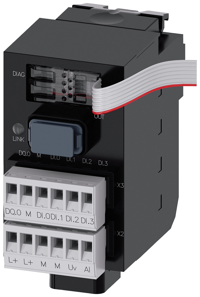 SIRIUS ACT con PROFINET: modulo di interfaccia standard con ingressi e uscite ampliati DC 24 V, morsetti a vite, fissaggio su piastra frontale, da 1 a 20 moduli terminali collegabili, con 1DQ+4DI+1AI aggiuntivi Modulo dinterfaccia per PROFINET SIRIUS ACTper il collegamento degli elementi di comando e segnalazione tramite PROFINET. Siemens offre, sotto il nome commerciale SIRIUS ACT, un portfolio esclusivo di dispositivi di comando e segnalazione con omologazioni di prodotto per il mercato mondiale in tre moderne serie di design in robusto metallo puro e plastica pregiata.Linnovativo concetto di innesto a scatto semplifica talmente il montaggio che per eseguirlo basta una sola mano e non servono attrezzi speciali. Per i fori di montaggio sono sufficientisemplici fori non scanalati, essendo già integrata una protezione antirotazione al 100 %.Grazie al grado di protezione elevato i robusti apparecchi sono adatti allimpiego industriale e in ambiente esterno. È persino possibile la pulizia con getto ad altapressione. Né polvere, né oli, né liscivia possono comprometterne il funzionamento affidabile.Oltre che con il cablaggio standard, gli apparecchi possono essere collegati al controllore anche tramite PROFINET, AS-Interface oppure IO-Link. Potete così ridurre il vostro onere di cablaggio, minimizzare le fonti di errore e ottenere maggiore flessibilità.Il configuratore online grafico supporta in modo confortevole la scelta e lordinazione di singoli apparecchi, pulsantiere e iscrizioni. È disponibile una documentazione completa (ad es. manuale, dati 3D, schema di collegamento). Esecuzioni fornibili: come modulo dinterfaccia fail-safe e standard, con morsetti a vite o a molla. SIRIUS ACT - Performance in Action nel comando e nella segnalazione. Semplici da montare, altamente performanti, semplicemente perfetti.