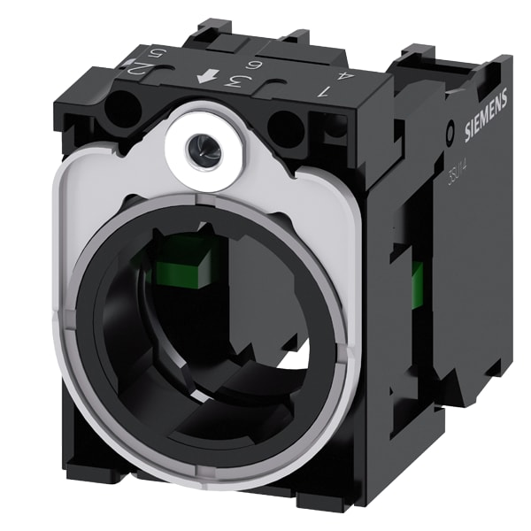 supporto, universale, per 3 moduli, in plastica/metallo, 1 NO, 1 NO, attacco a vite Supporto SIRIUS ACT per il fissaggio di pulsanti/selettori e indicatori modulari. Standard: supporto 3x, supporto 4x solo in combinazione con manipolatore joystick/selettore a 4 posizioni. Siemens offre, sotto il nome commerciale SIRIUS ACT, un portfolio esclusivo di dispositivi di comando e segnalazione con omologazioni di prodotto per il mercato mondiale in tre moderne serie di design in robusto metallo puro e plastica pregiata.Linnovativo concetto di innesto a scatto semplifica talmente il montaggio che per eseguirlo basta una sola mano e non servono attrezzi speciali. Per i fori di montaggio sono sufficienti semplici fori non scanalati, essendo già integrata una protezione antirotazione al 100 %.Grazie al grado di protezione elevato i robusti apparecchi sono adatti allimpiego industriale e in ambiente esterno. È persino possibile la pulizia con getto ad alta pressione. Né polvere, né oli, né liscivia possono comprometterne il funzionamento affidabile.Oltre che con il cablaggio standard, gli apparecchi possono essere collegati al controllore anche tramite PROFINET, AS-Interface oppure IO-Link. Potete così ridurre il vostro onere di cablaggio, minimizzare le fonti di errore e ottenere maggiore flessibilità.Il configuratore online grafico supporta in modo confortevole la scelta e lordinazione di singoli apparecchi, pulsantiere e iscrizioni. È disponibile una documentazione completa (ad es. manuale, dati 3D, schema di collegamento). Esecuzioni fornibili: plastica/metallo, con/senza moduli. SIRIUS ACT - Performance in Action nel comando e nella segnalazione. Semplici da montare, altamente performanti, semplicemente perfetti.